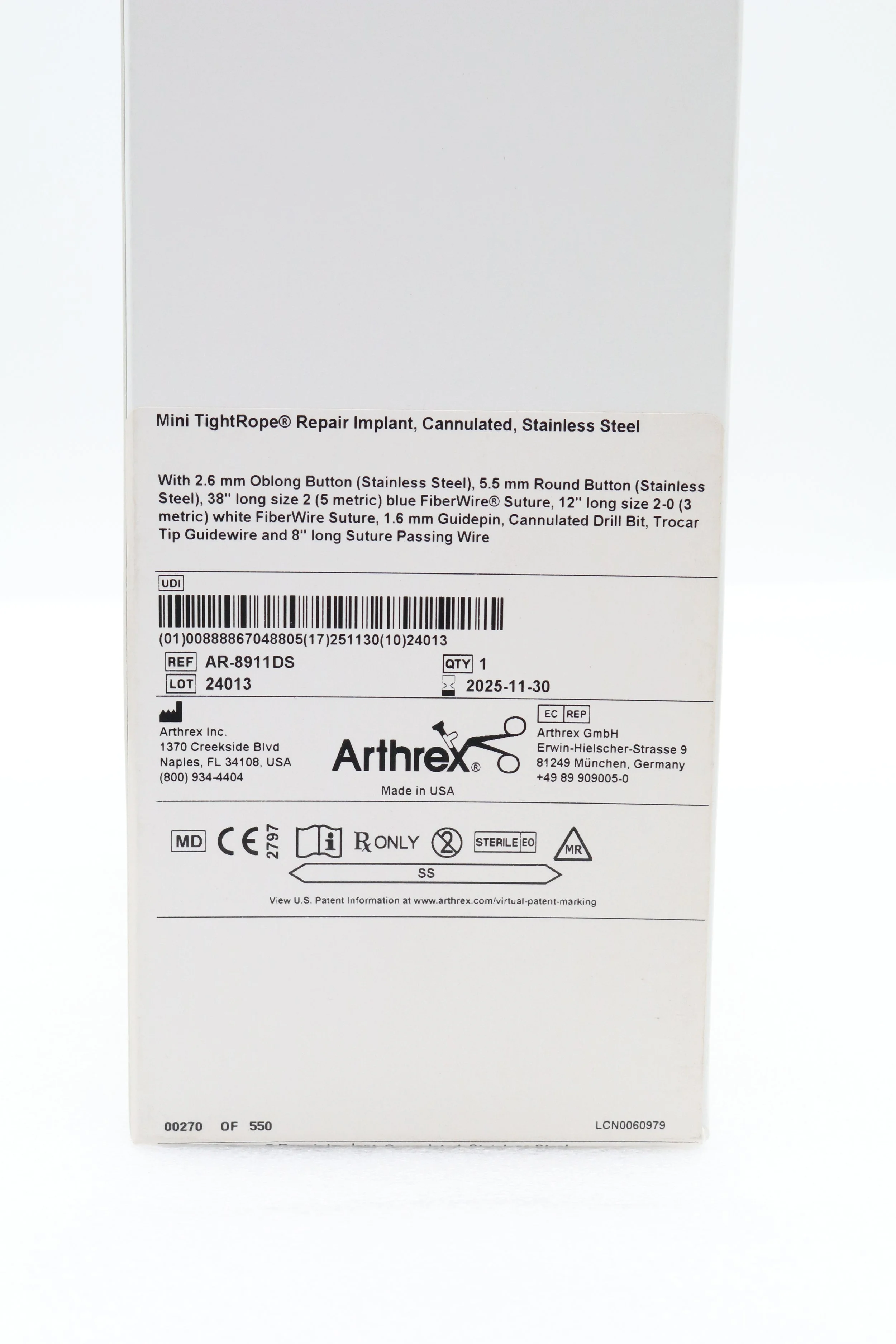 Arthrex | AR-8911DS | Mini TightRope Repair Implant, Cannulated, Stainless Steel