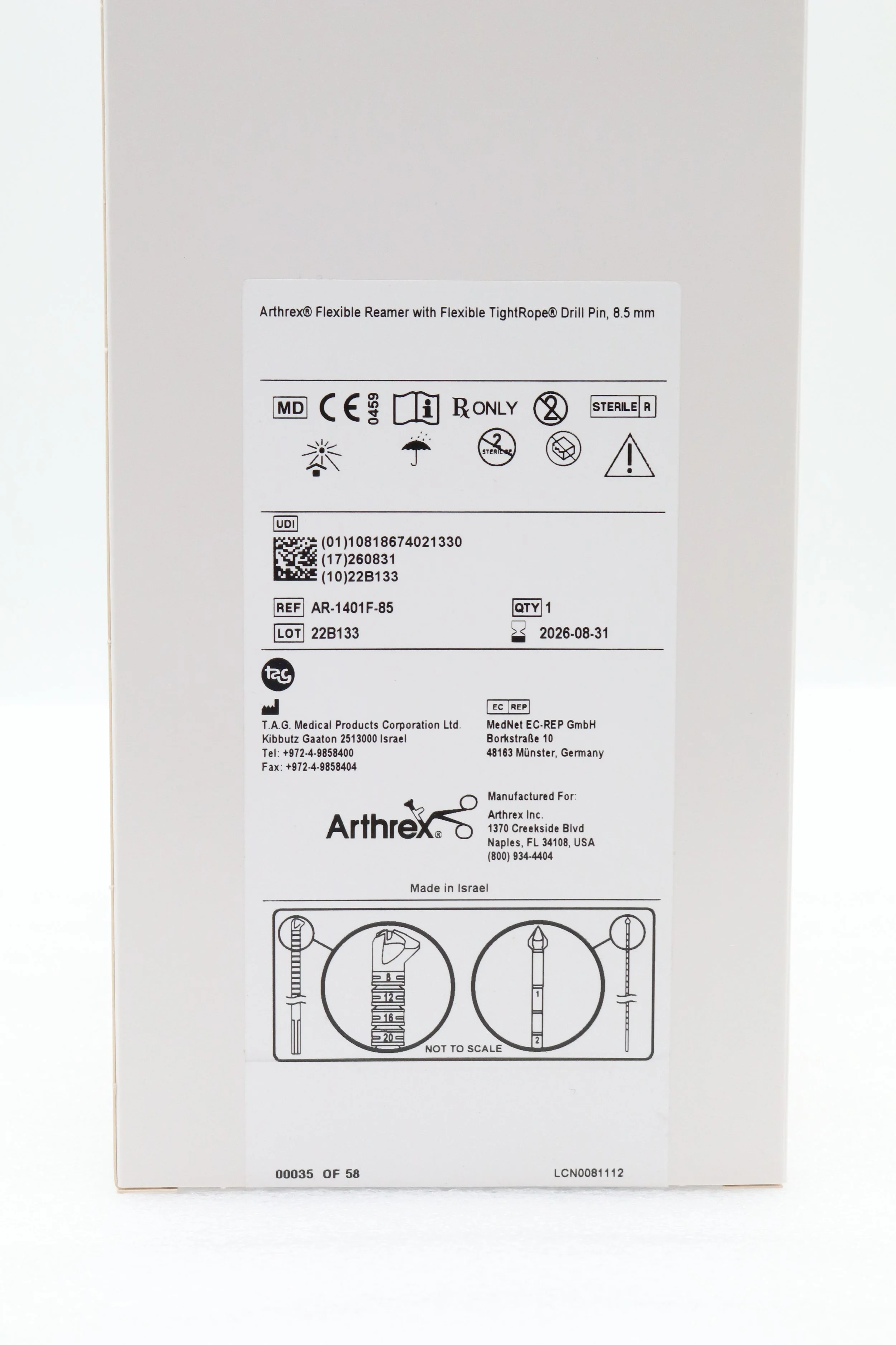Arthrex | AR-1401F-85 | Flexible Reamer with Flexible TightRope Drill Pin 8.5mm
