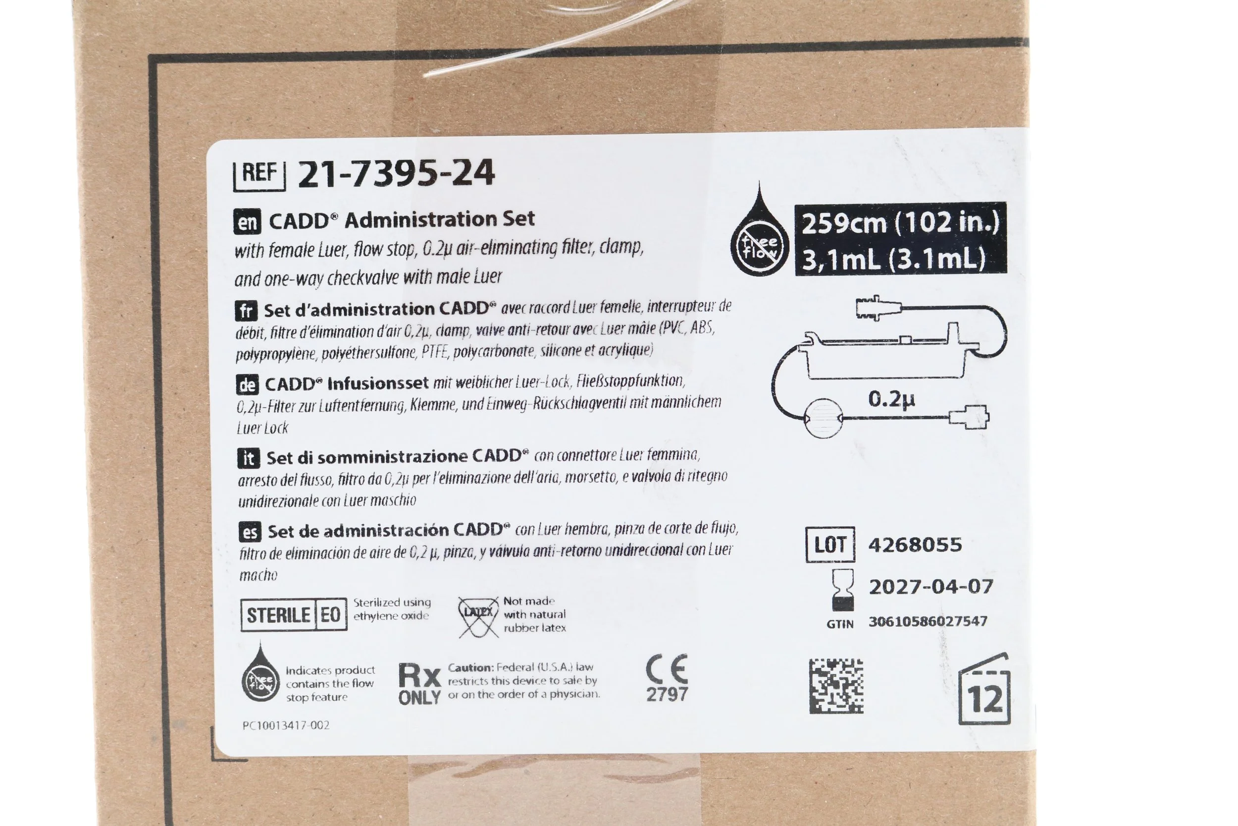 Smiths Medical | 21-7395-24 | INDATE | Box of 12 | CADD Administration Set with female Luer