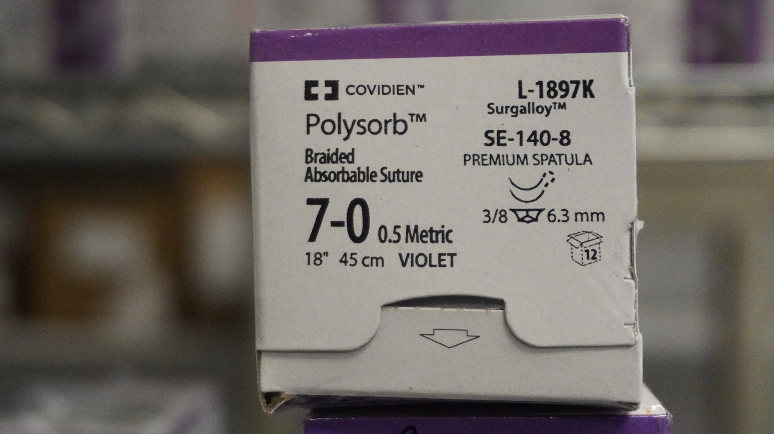 COVIDIEN | L-1897K | IN-DATE | PACK of 12/pc | Polysorb Braided Absorbable Suture 7-0 0.5 Metric 18" 45cm VIOLET