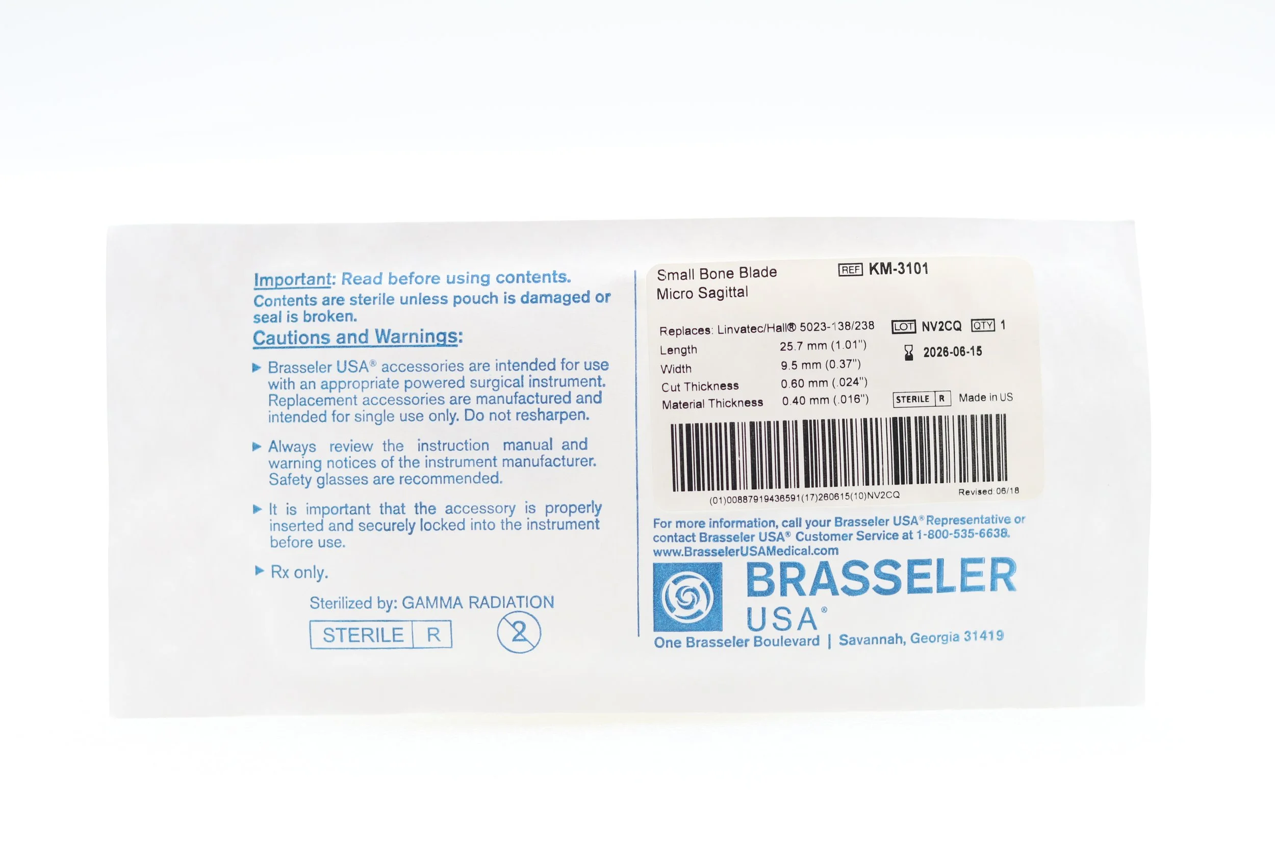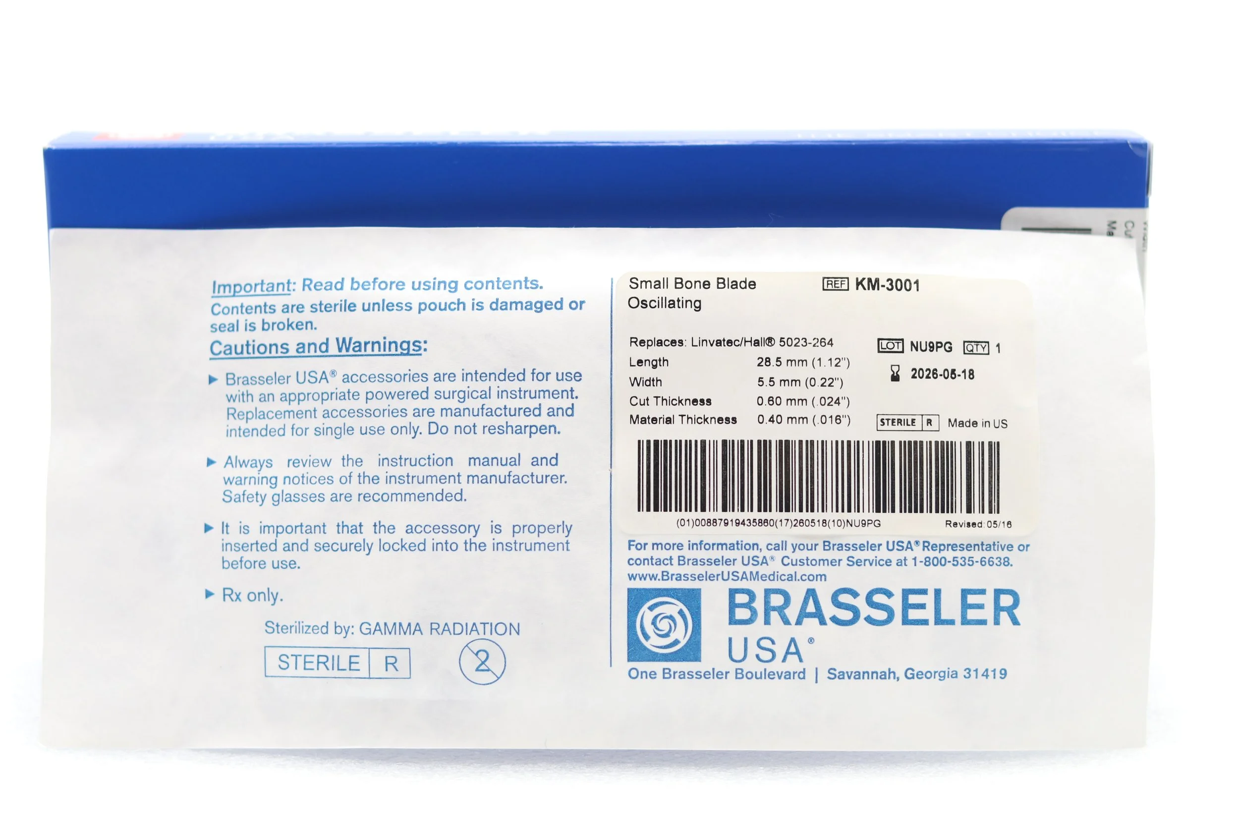 Brasseler | KM3-105 | Box of 5 | Small Bone Blade Oscillating and Sagittal