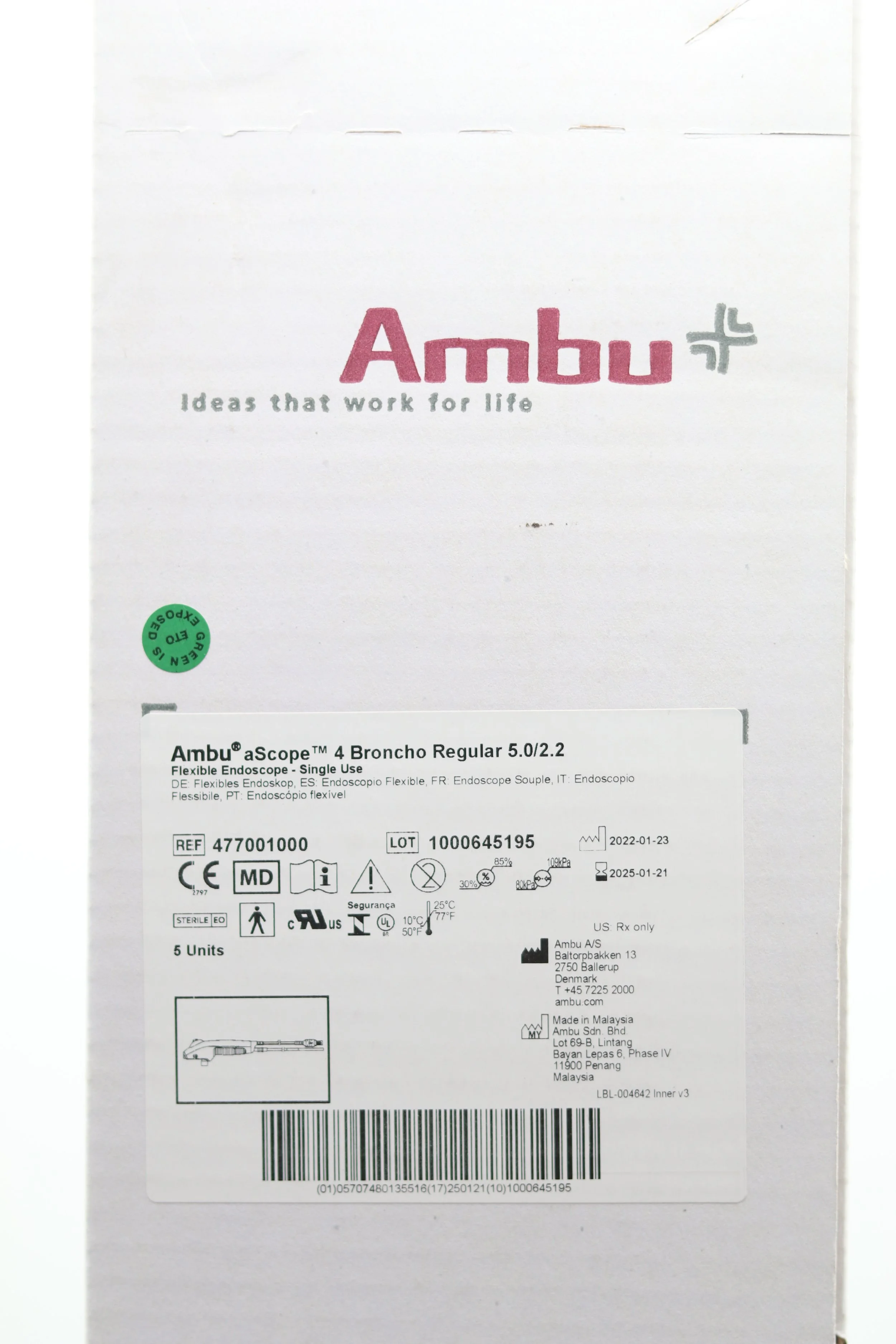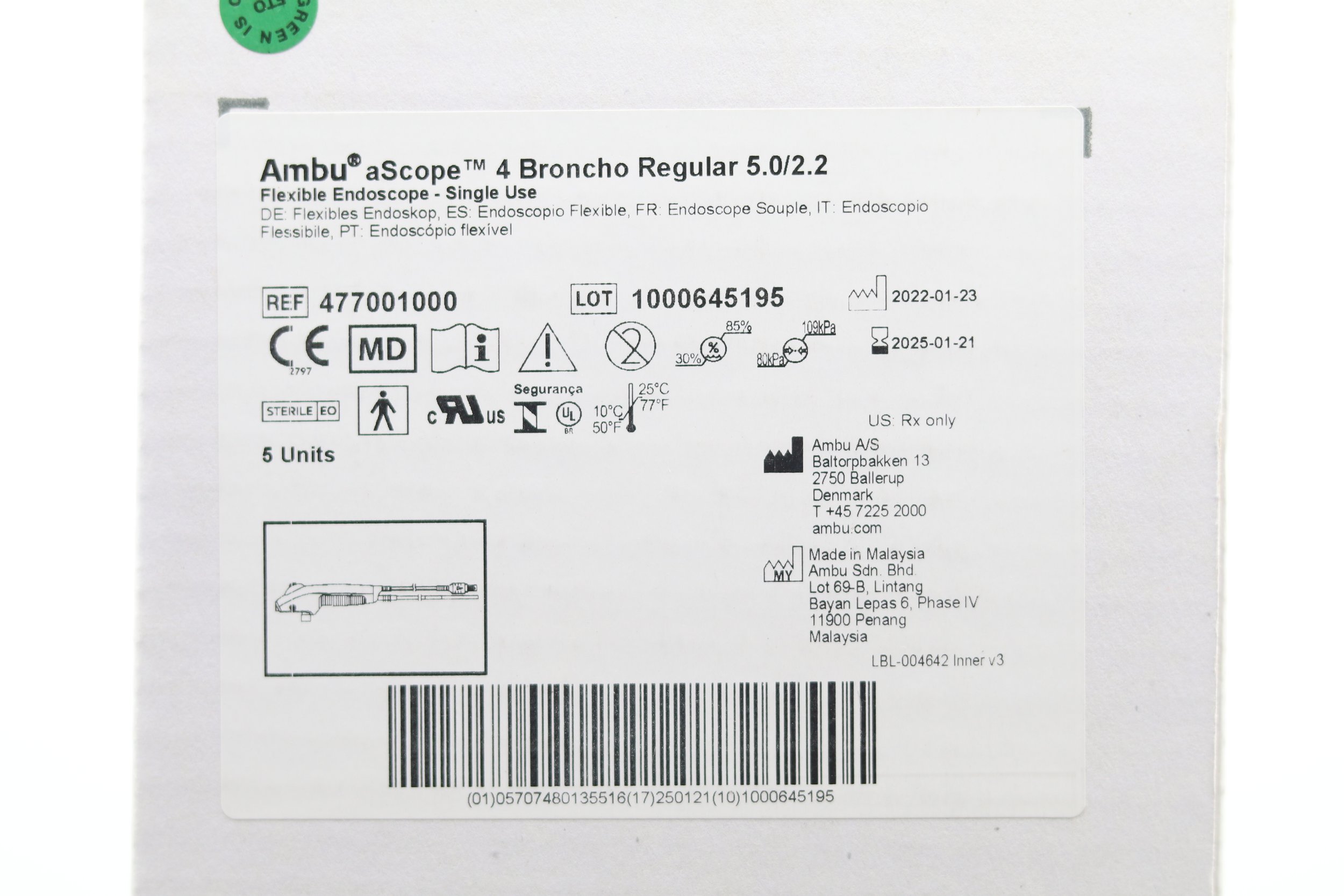 Ambu | 477001000 | EXPIRED | EACHES | aScope 4 Broncho Regular 5.0/2.2 Flexible Endoscope Single Use