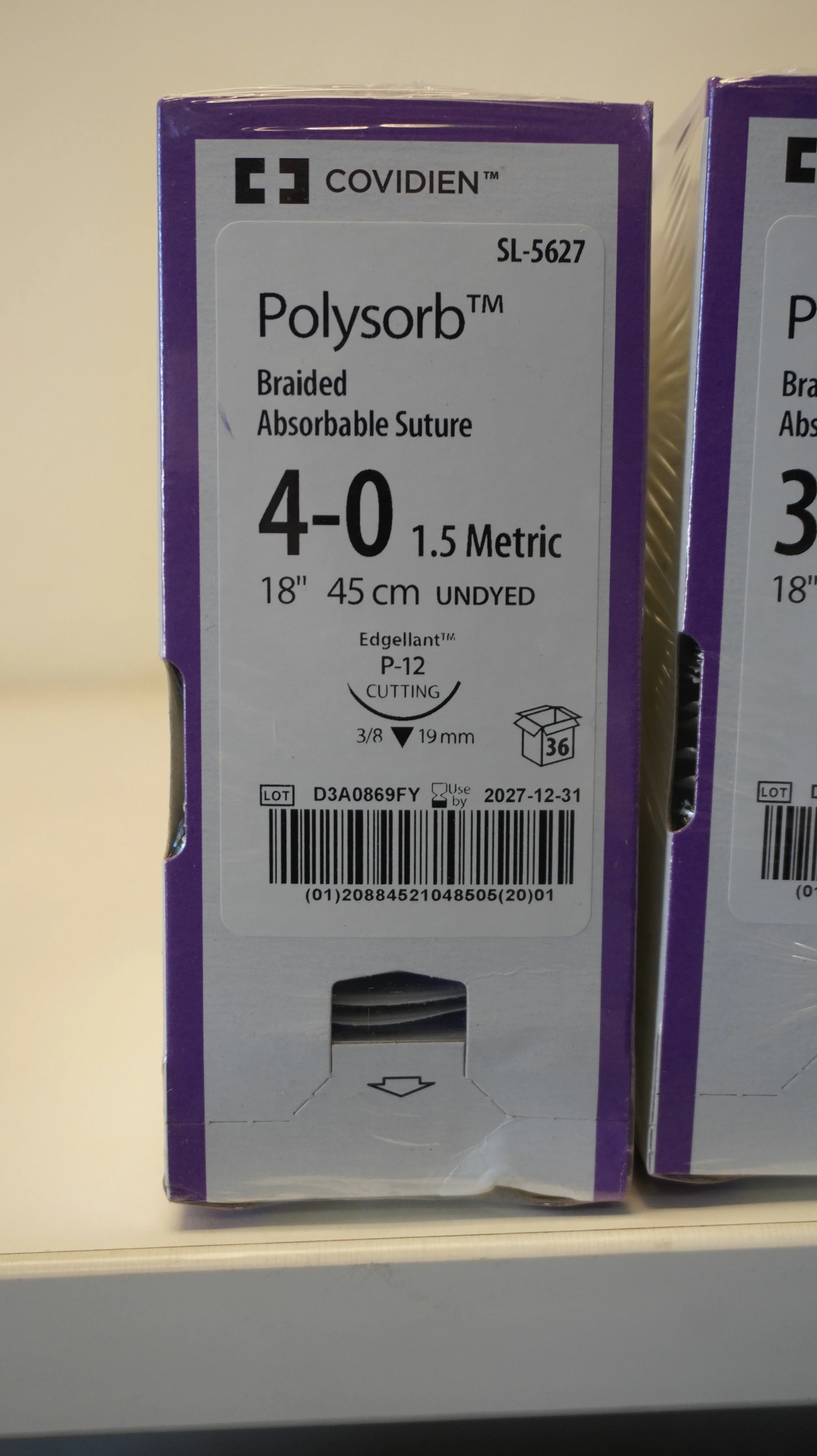 COVIDIEN | UL-47-MG | IN-DATE | BOX OF 12 | (UL47MG) Polysorb Braided Absorbable Suture 3-0 2 Metric 5x18" 45cm UNDYED