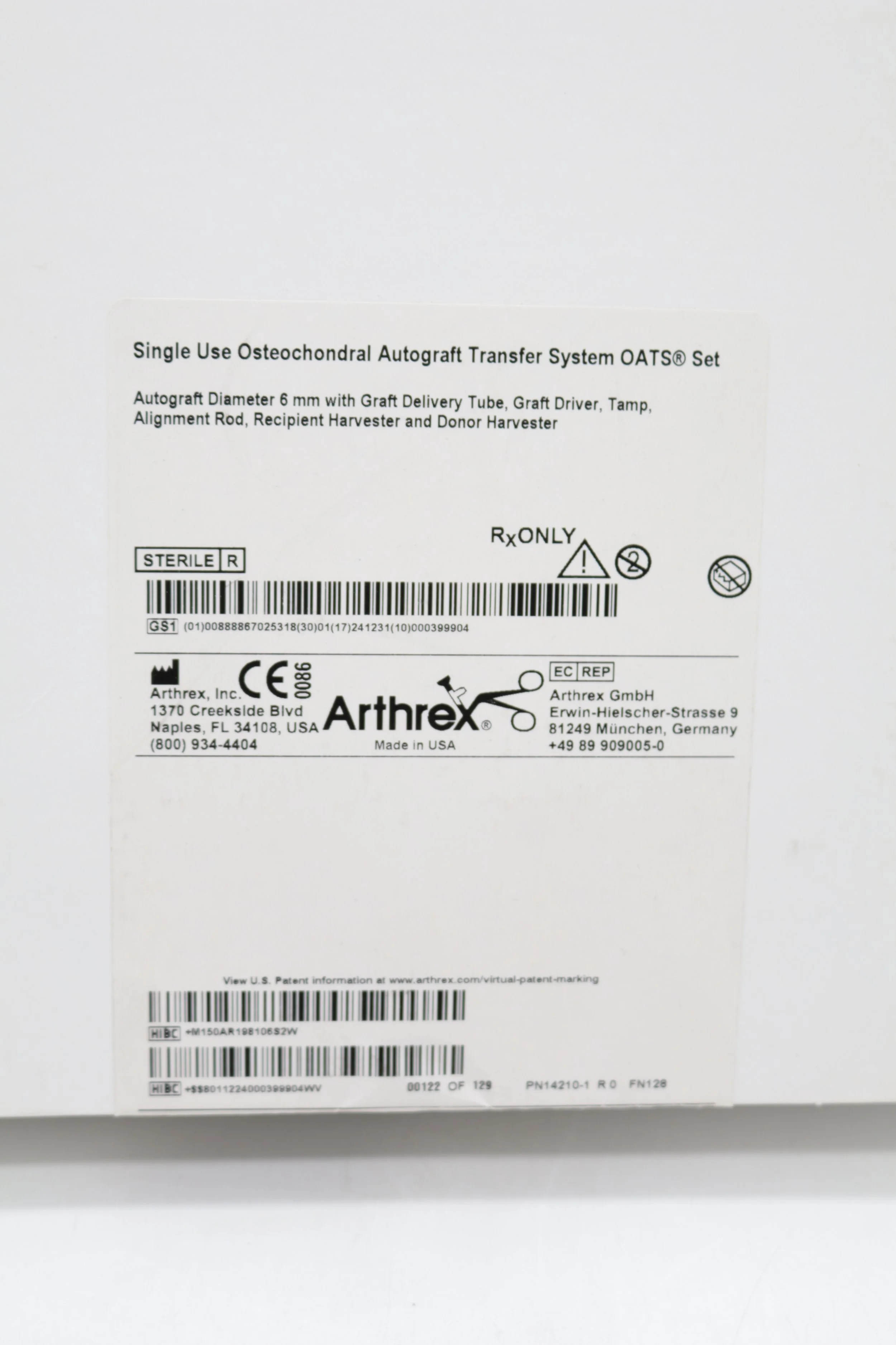 Arthrex | AR-1981-06S | SHORTDATE | EACHES | Single Use Osteochondral Autograft Transfer System OATS Set