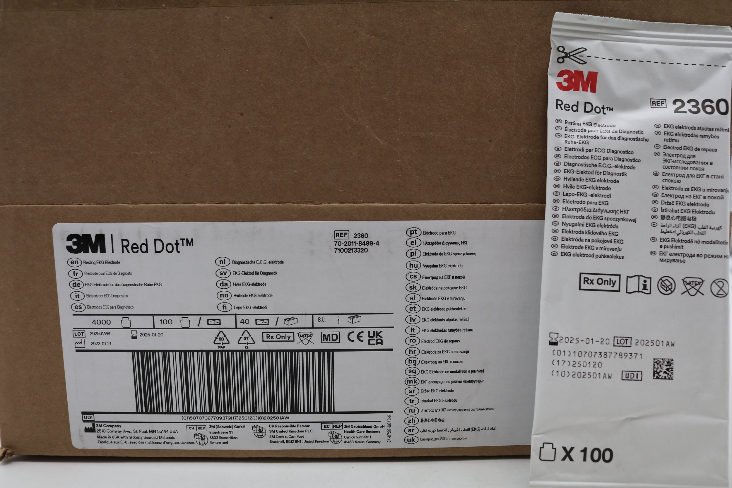 3M | 2360 | SHORTDATE | CASE OF 4000 | Red Dot ECG Tab Electrode, 10 Tabs/Card, 10 Cards/Bag, 40Bag/CS