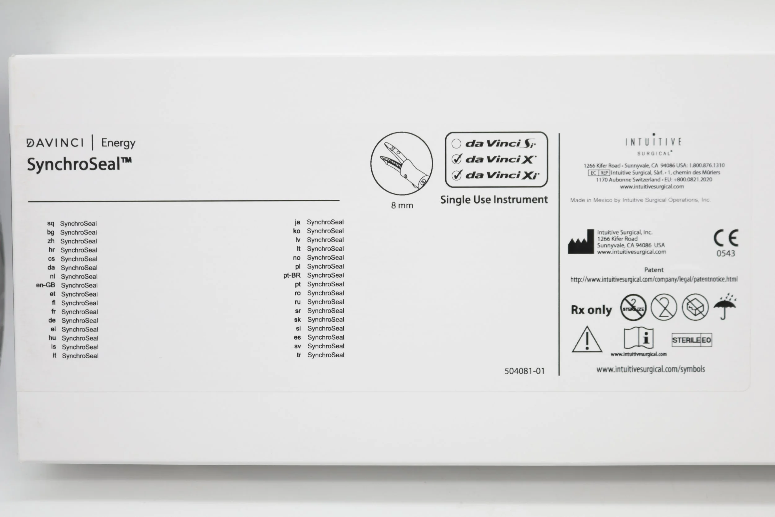 Intuitive Surgical | 480440 | EXPIRED | EACHES | Energy Da Vinci X Xi SyncroSeal 8mm Single Use Instrument