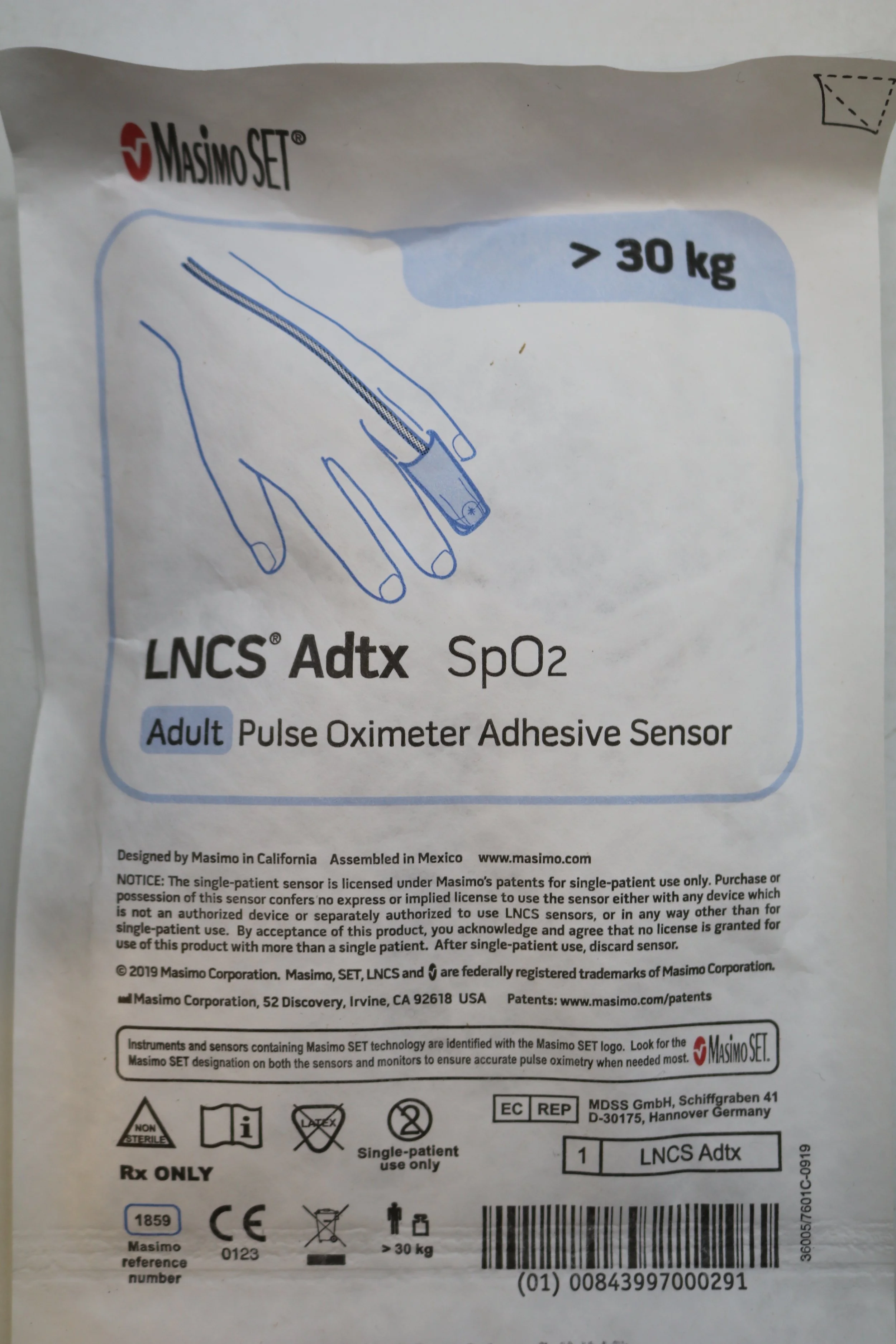 Masimo | 1859 | EACHES | LNCS Adtx Sp02 Adult Pulse Oximeter Adhesive Sensor