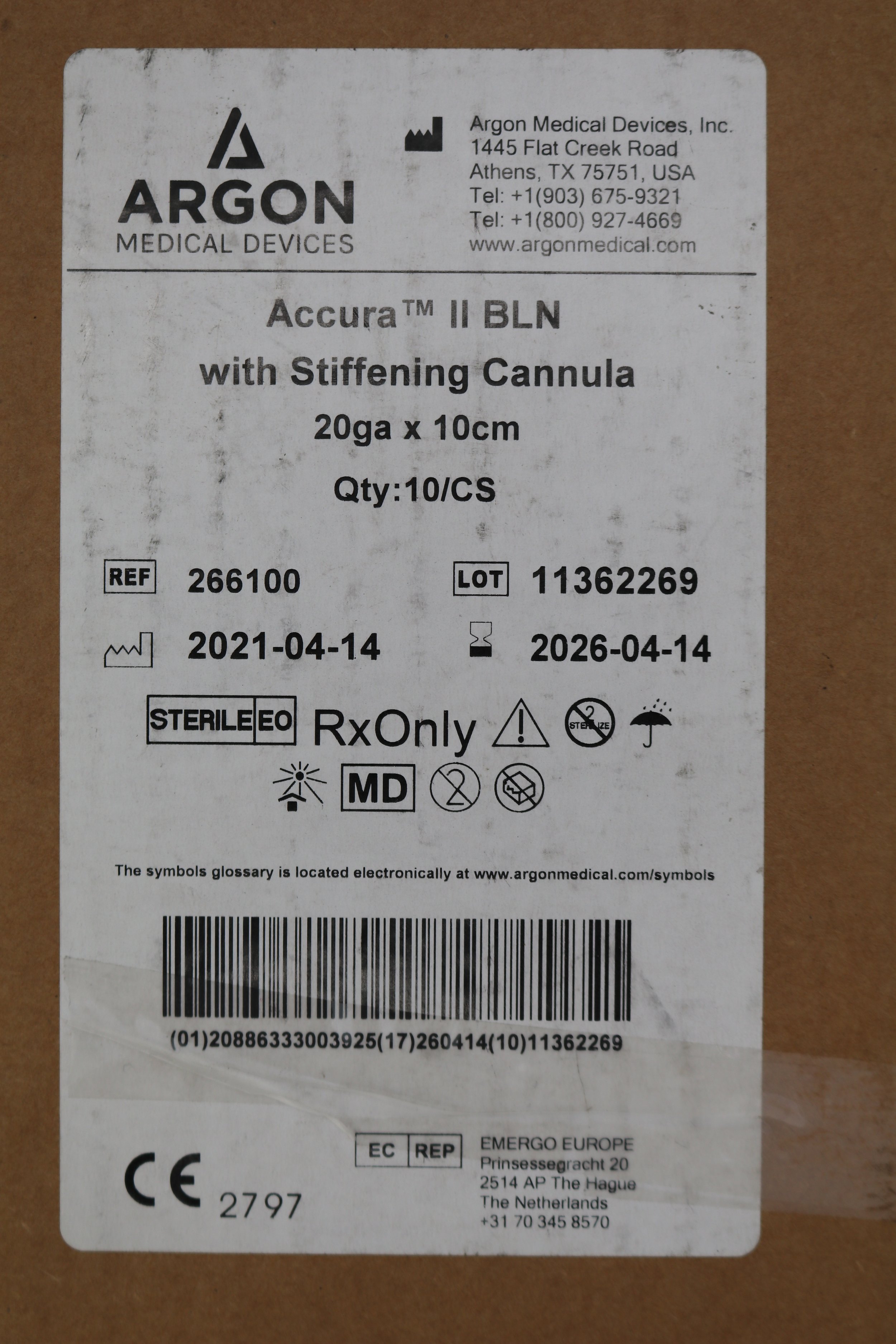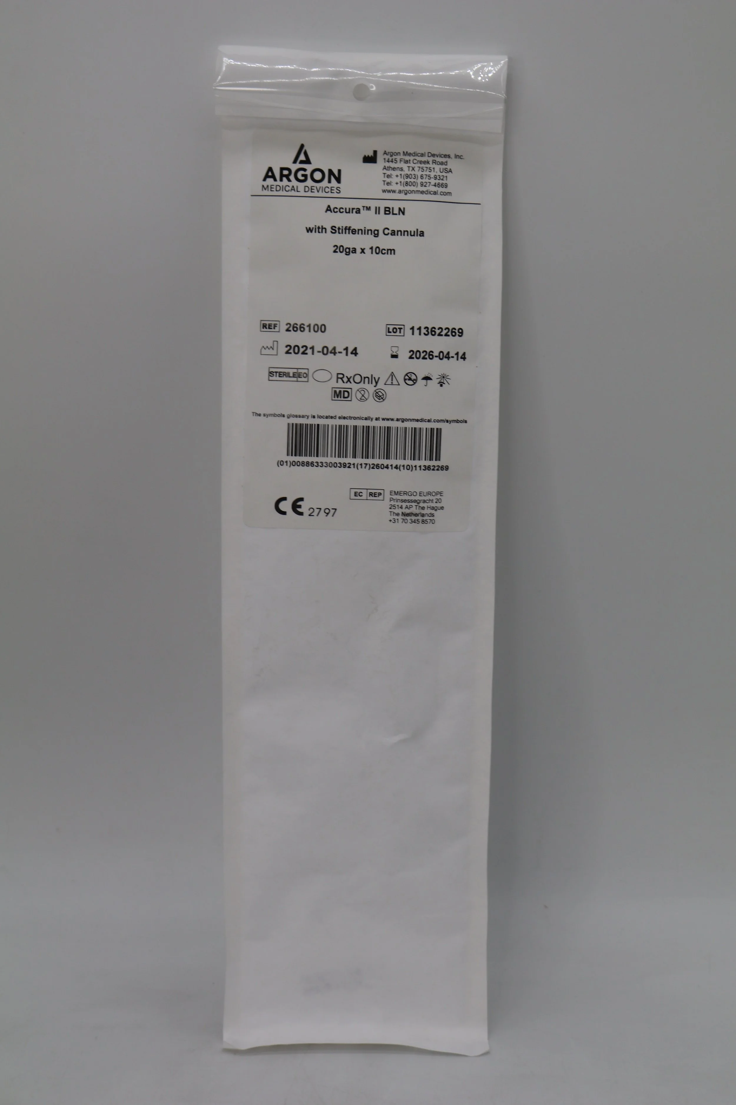 Argon | 266100 | Box of 10 | Accura II BLN with Stiffening Cannula 20ga x 10cm