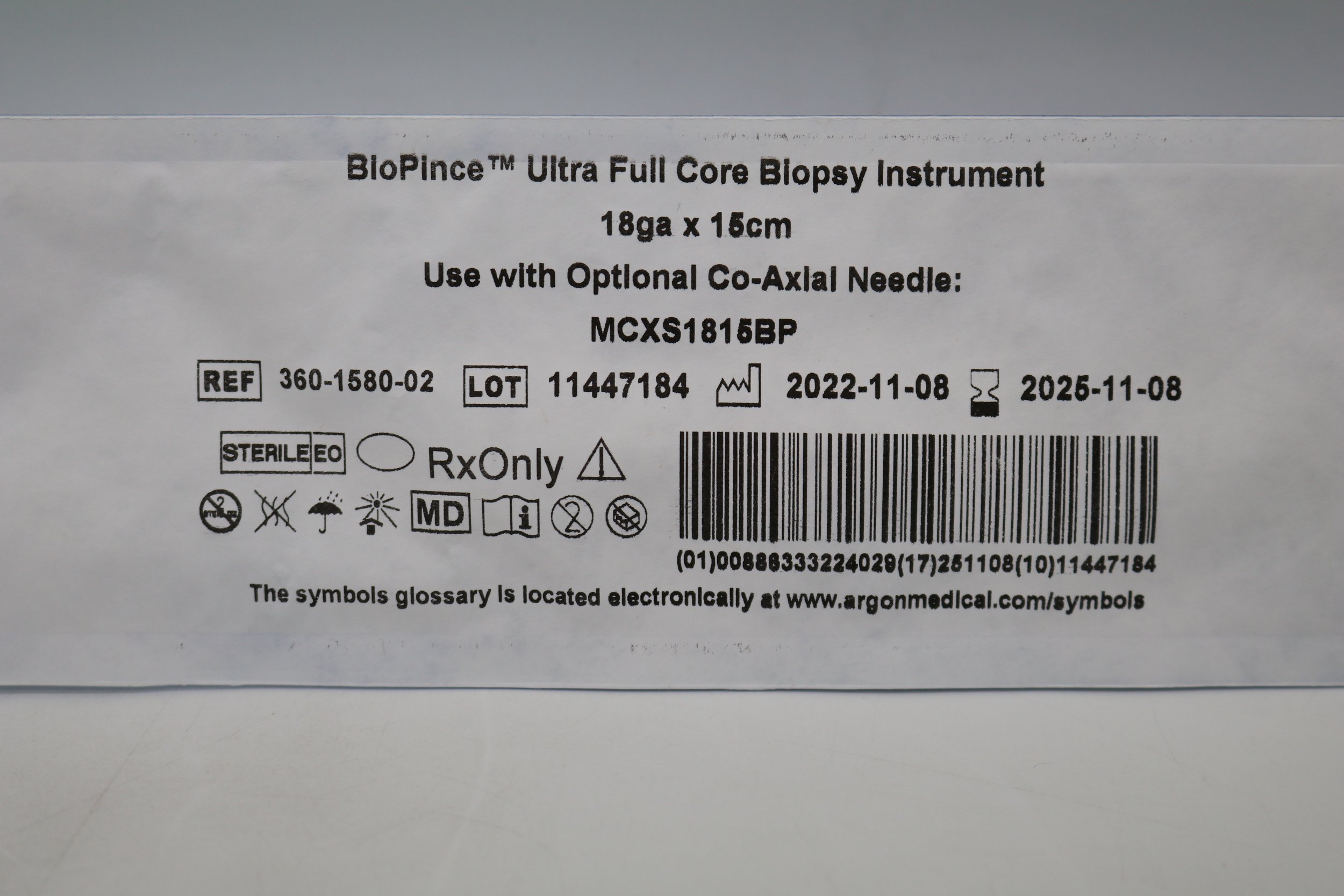 Argon | 360-1580-02 | Box of 5 | BioPince Ultra FUll Core Biopsy Instrument 18ga x 15cm