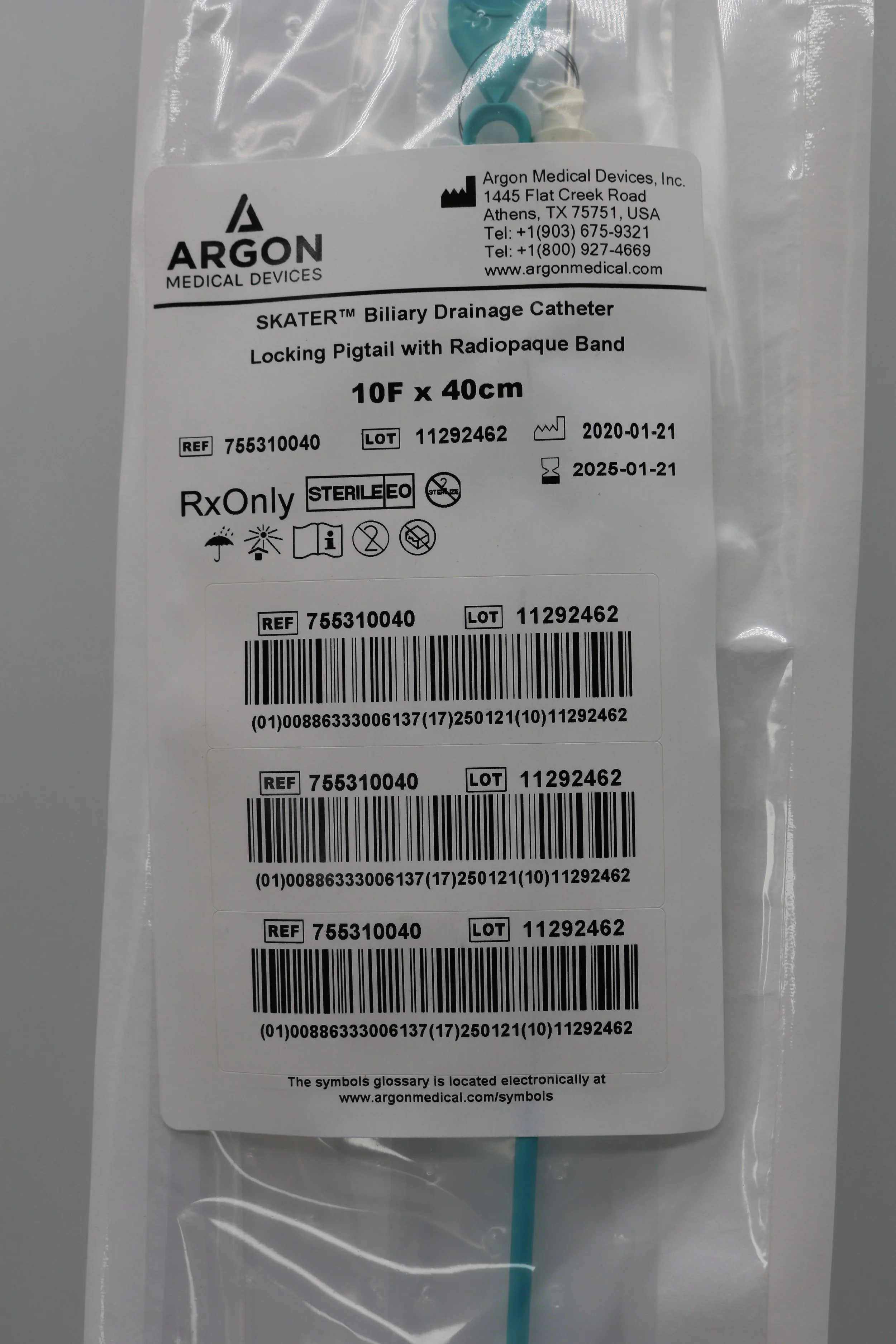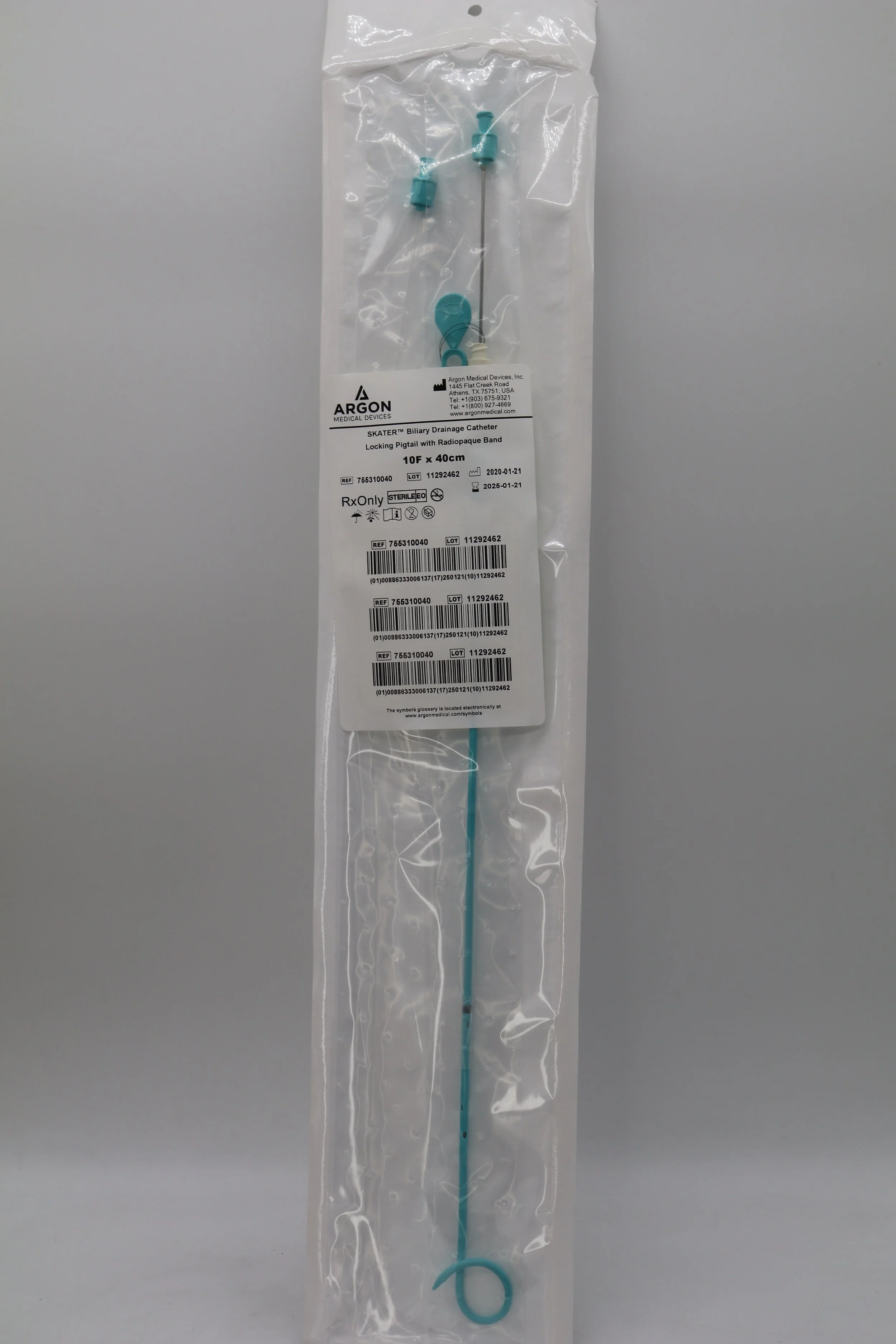 Argon | 755310040 | Box of 5 | Skater Biliary Drainage Catheter Locking Pigtail with Radiopaque Band 10F x 40cm
