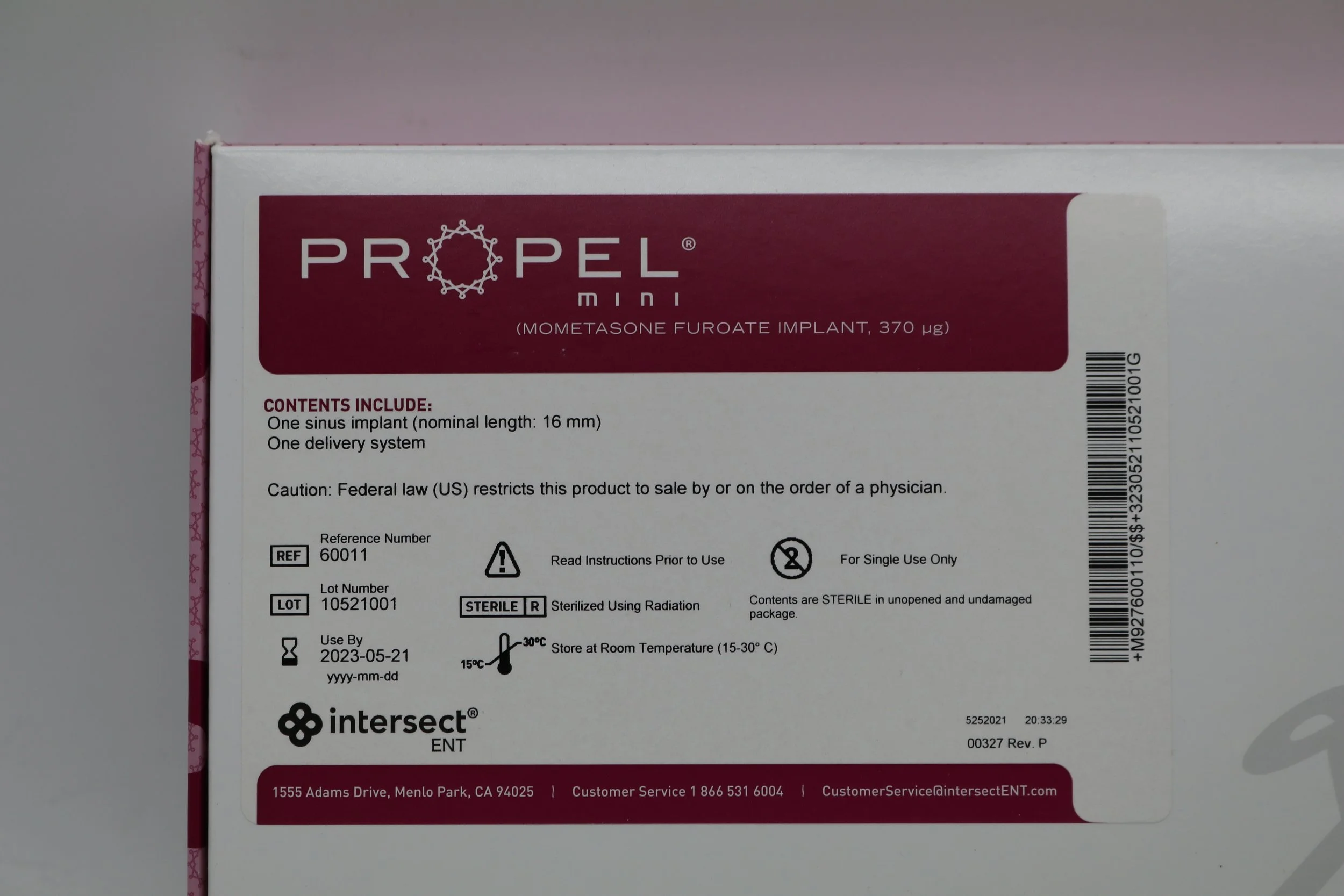Intersect ENT | 60011 | EXPIRED | Propel Mini Mometasone Furoate Implant 370 microgram