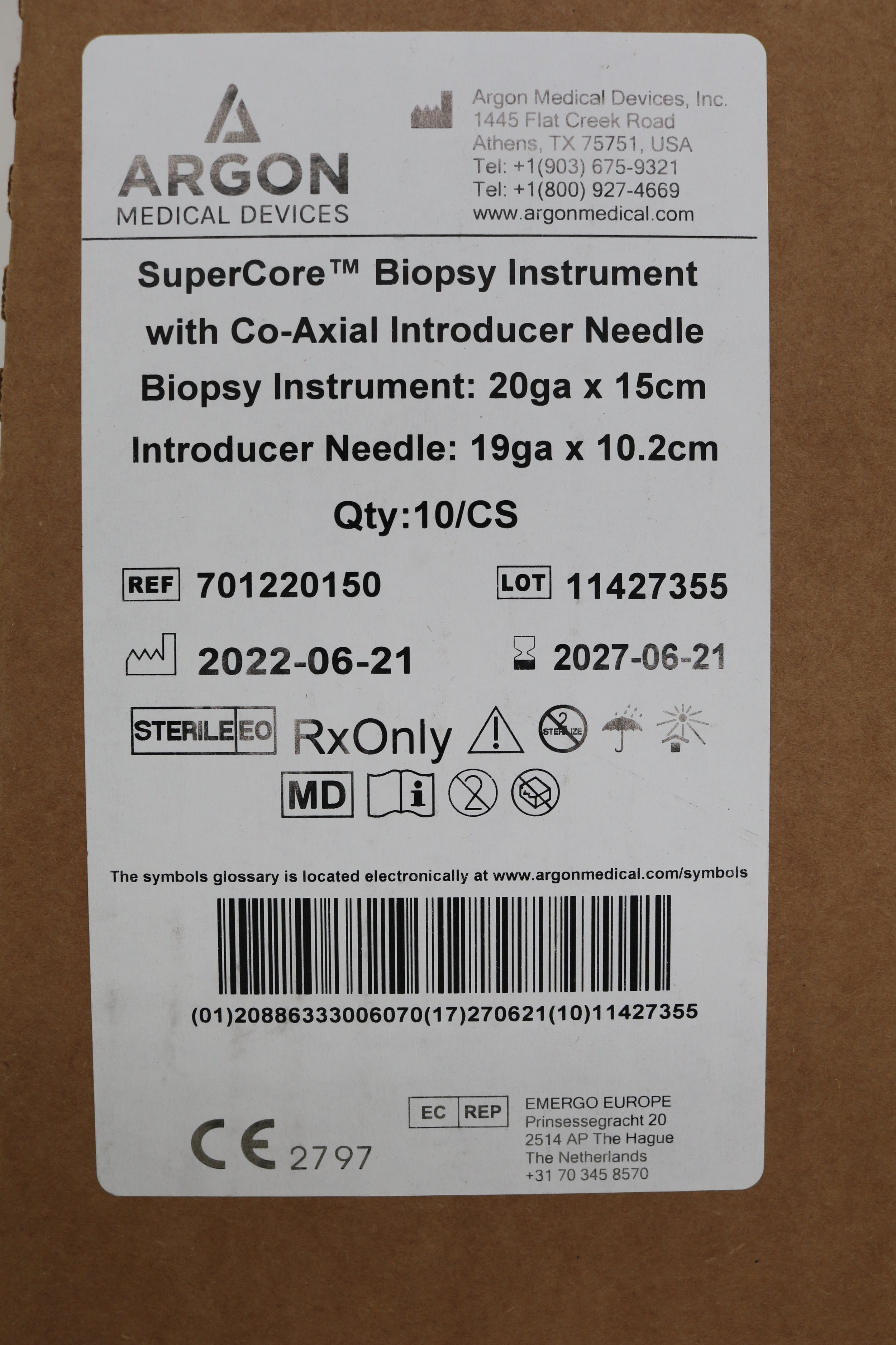 Argon | 701218090 | Box of 10 | SuperCore Biopsy Instrument with Co-Axial Introducer Needle