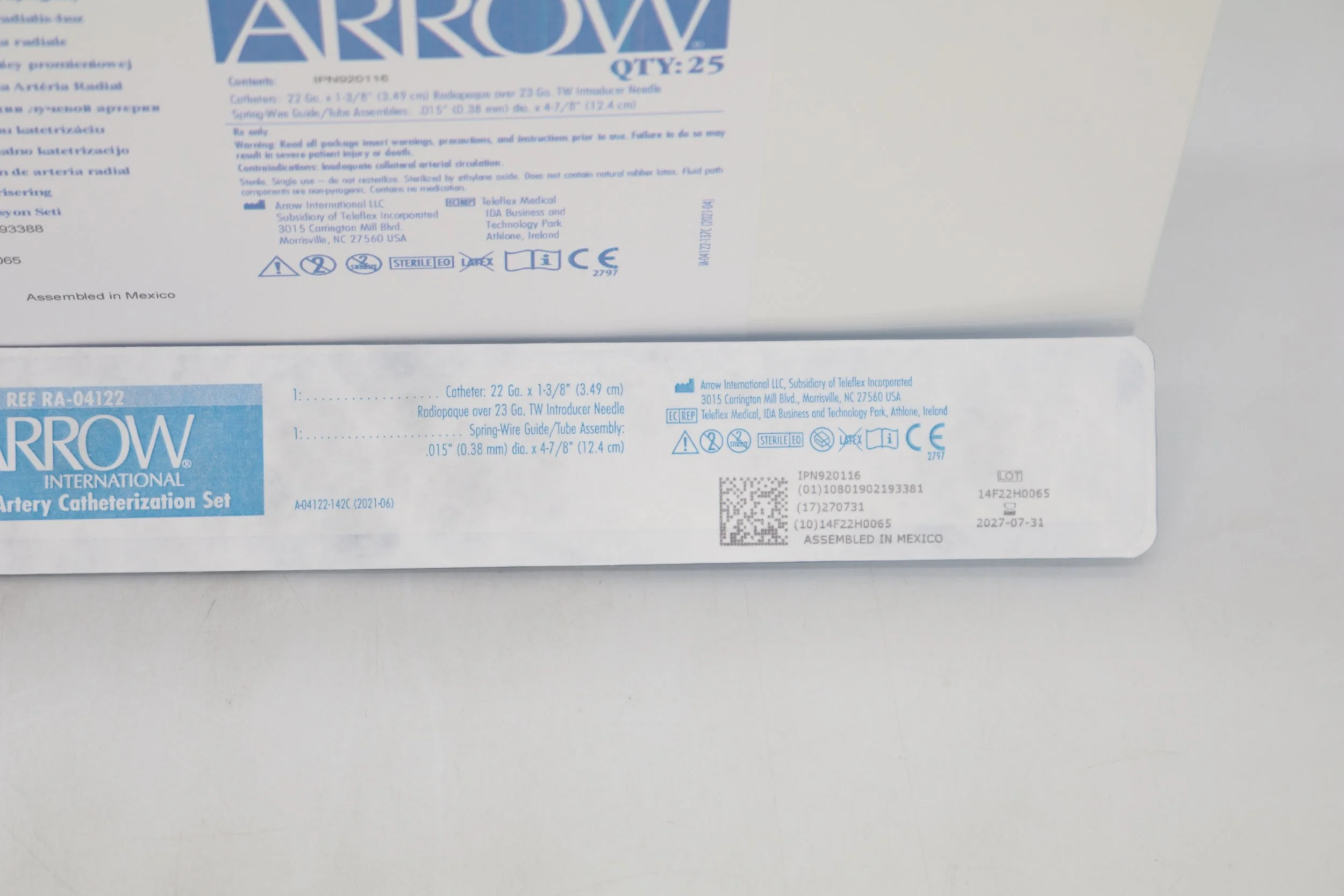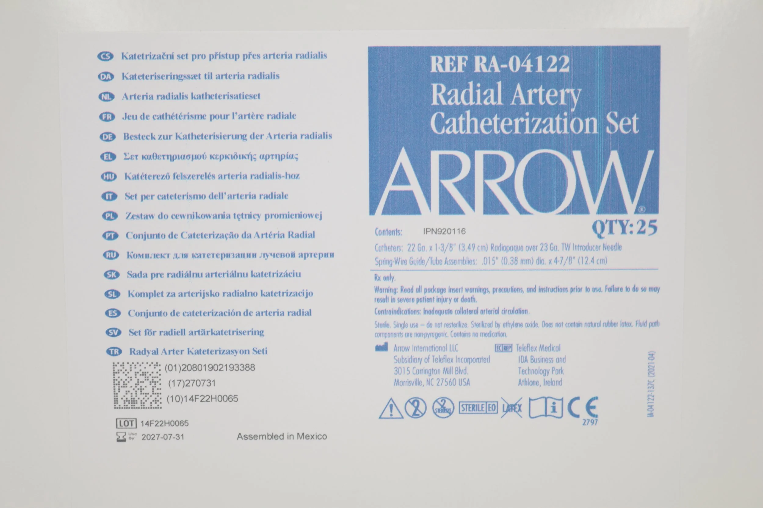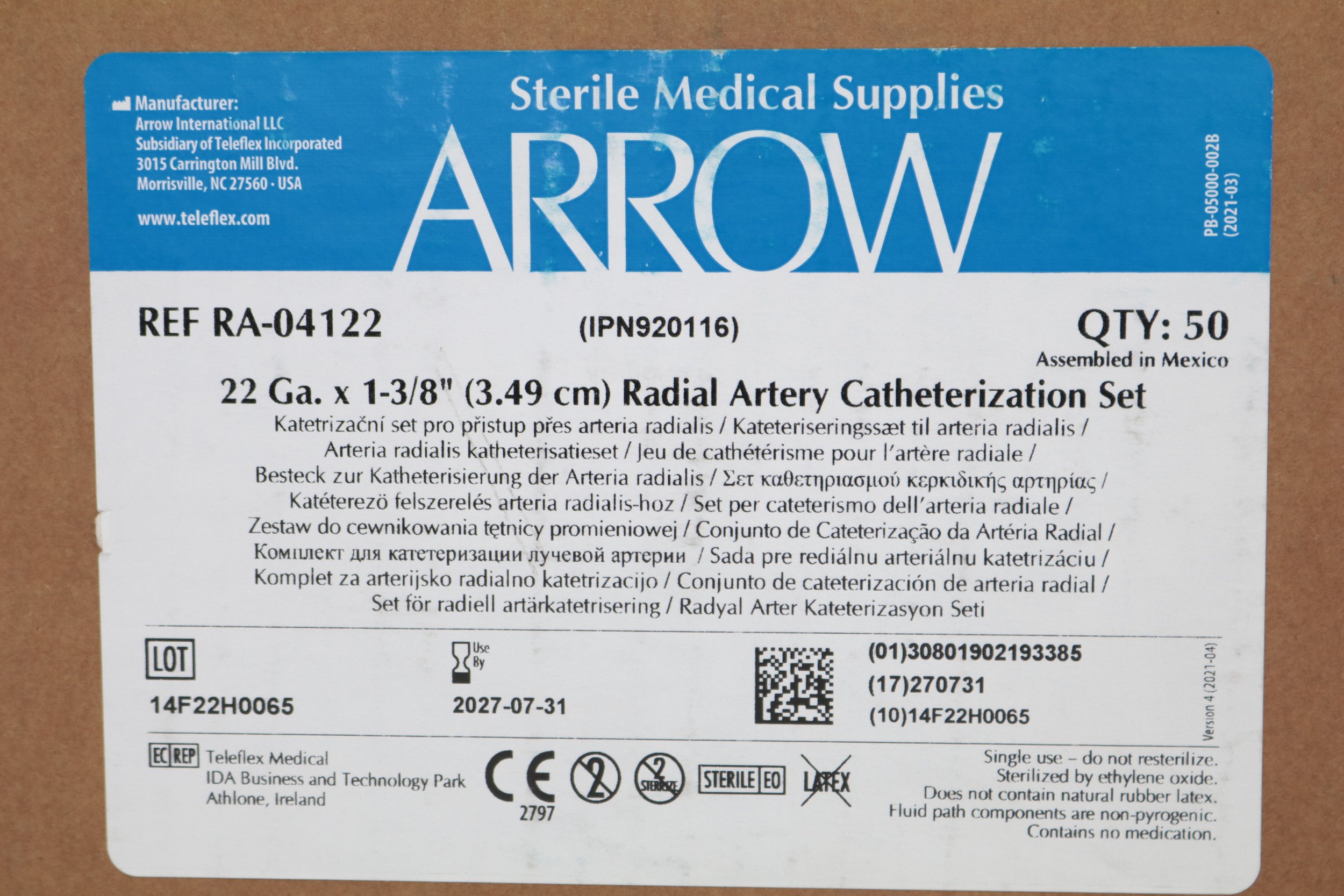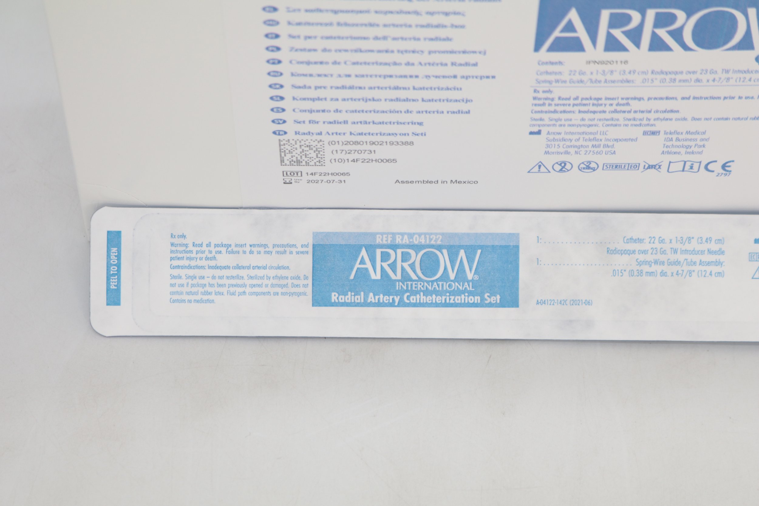Arrow | RA-04122 | IN-DATE | EACHES | Radial Artery Catheterization Set 22 Ga. x 13/8" (3.49cm)