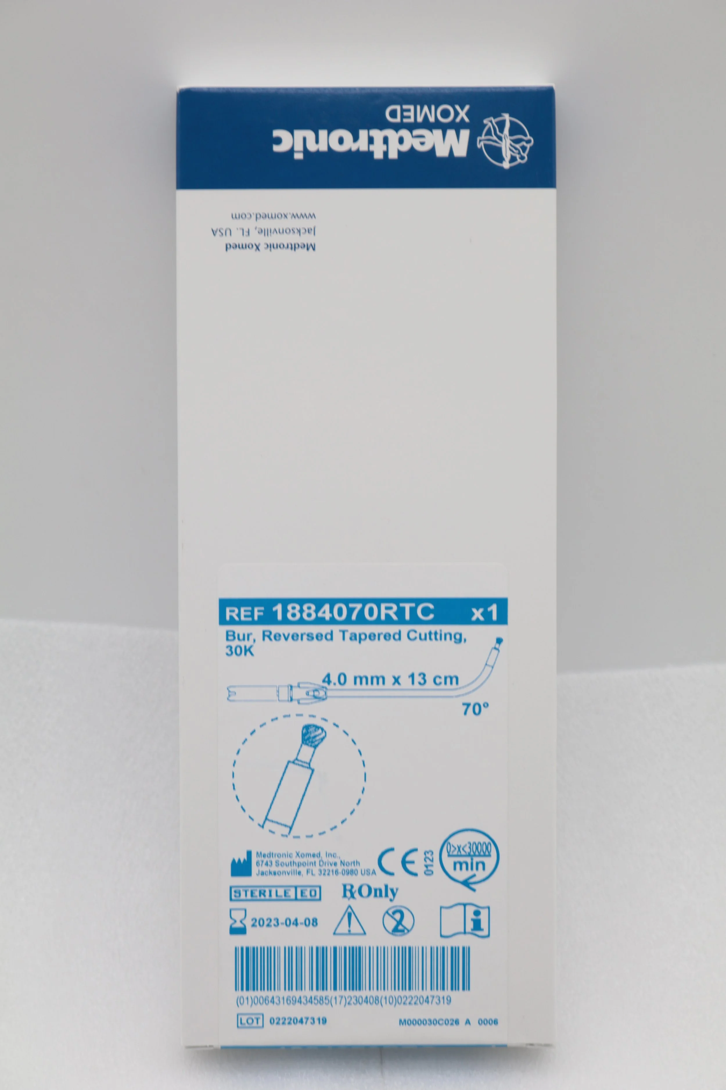 Medtronic | 1884070RTC | EXPIRED | EACHES | Reversed Tapered Cutting Bur 30K 4.0mm x 13cm 70°