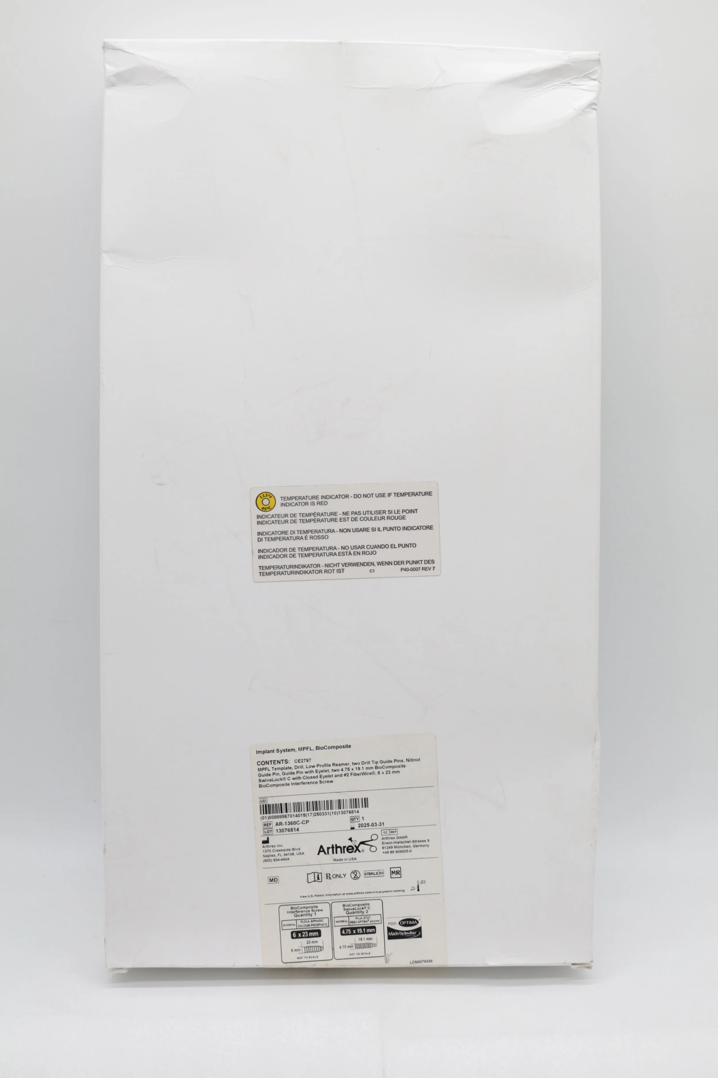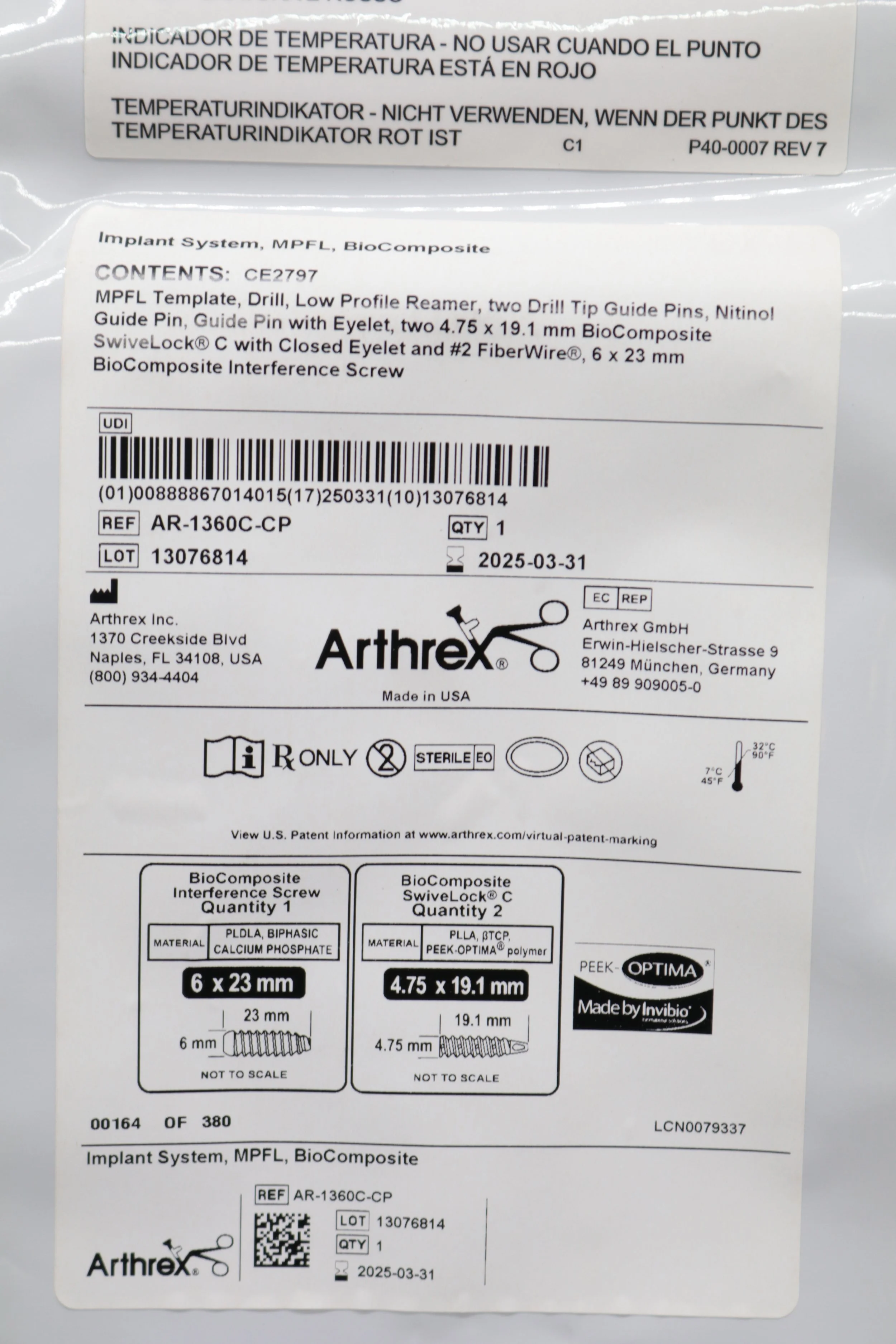 Arthrex | AR-1360C-CP | SHORTDATE | EACHES | Biocomposite MPFL Implant System CE2797