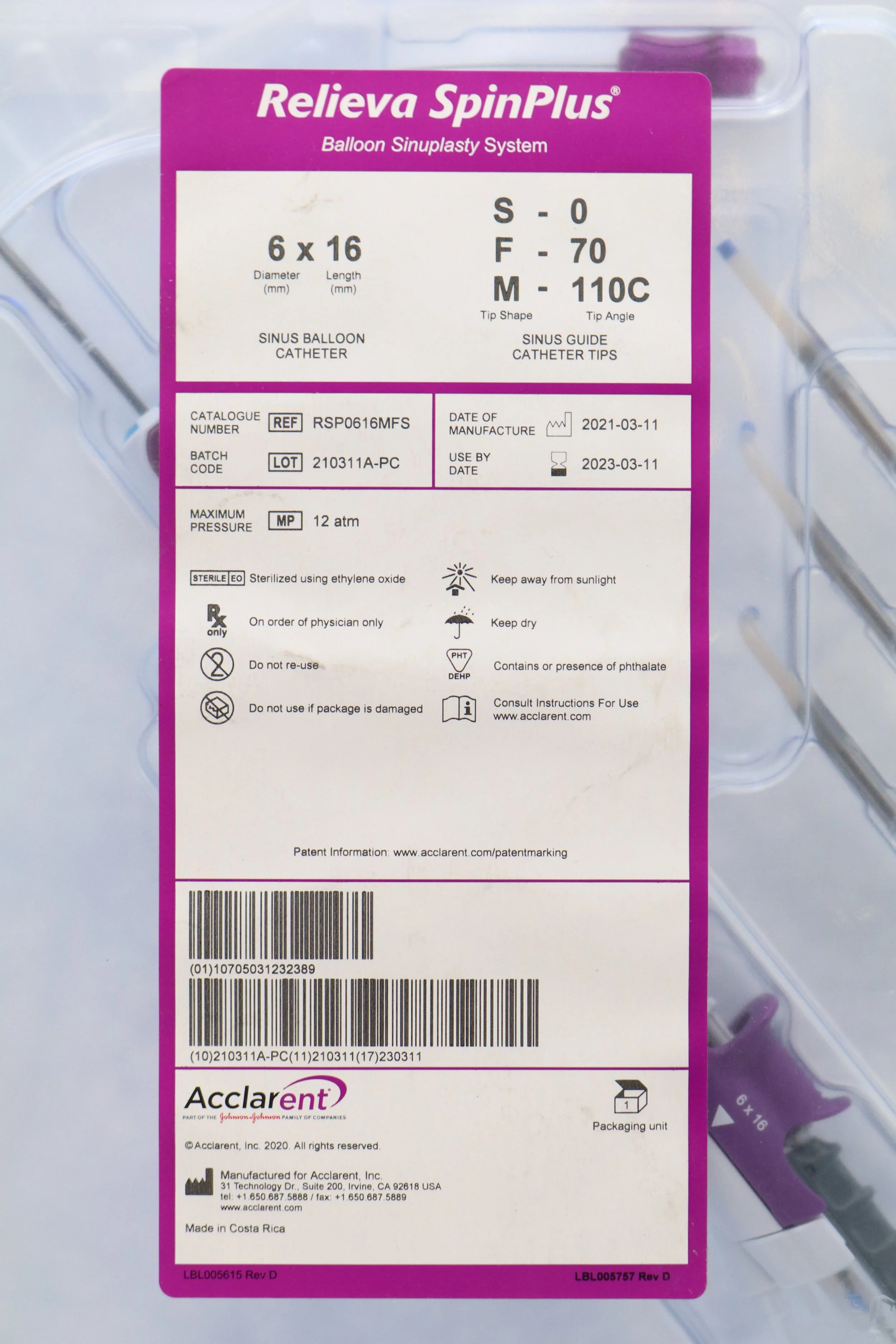Acclarent | RSP0616MFS | EXPIRED | EACHES | Relieva SpinPlus Balloon Sinuplasty System