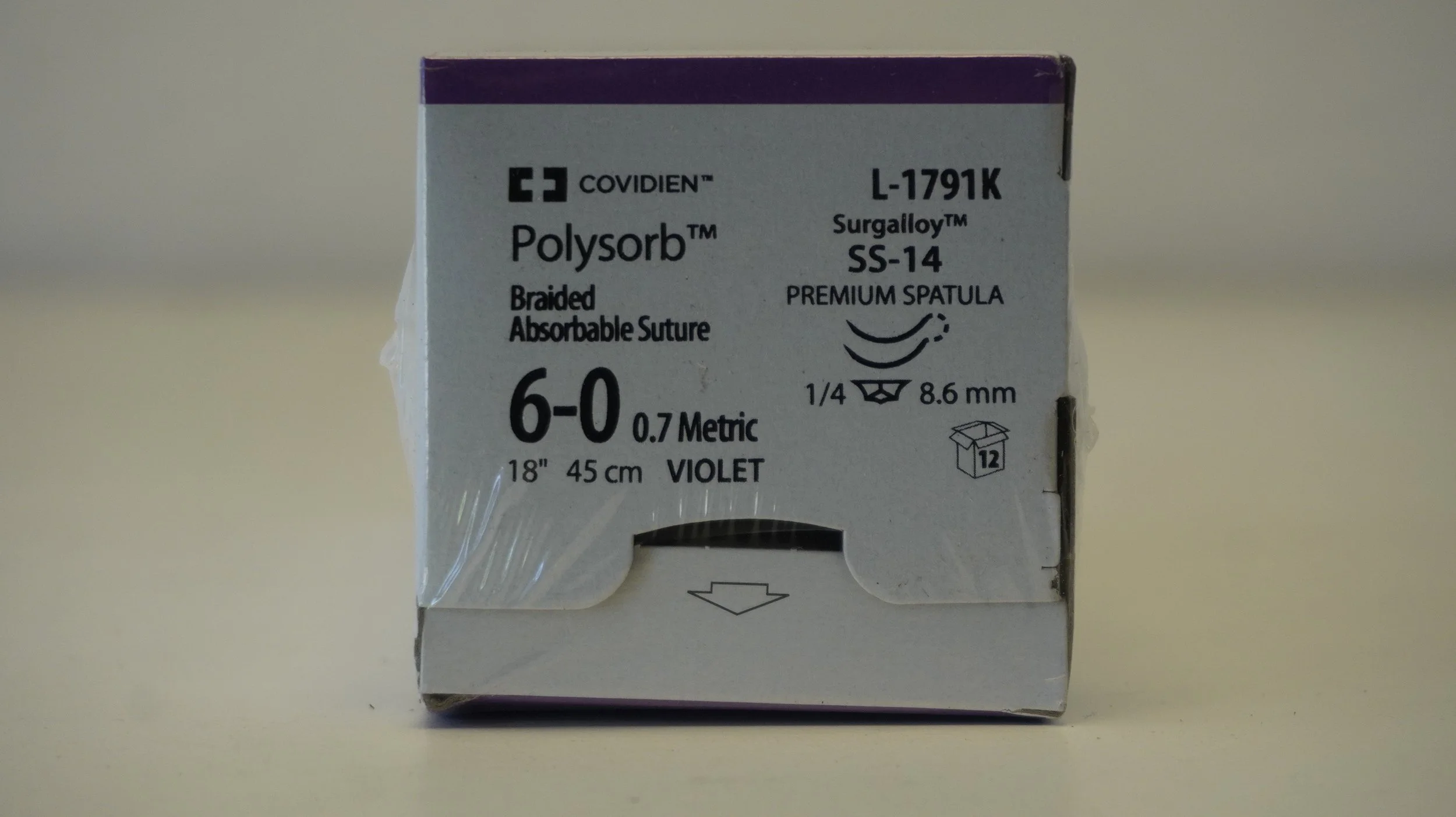 COVIDIEN | SL-1625 | PACK of 36/pc | Polysorb Braided Absorbable Suture 6-0 0.7 Metric 18" 45cm UNDYED