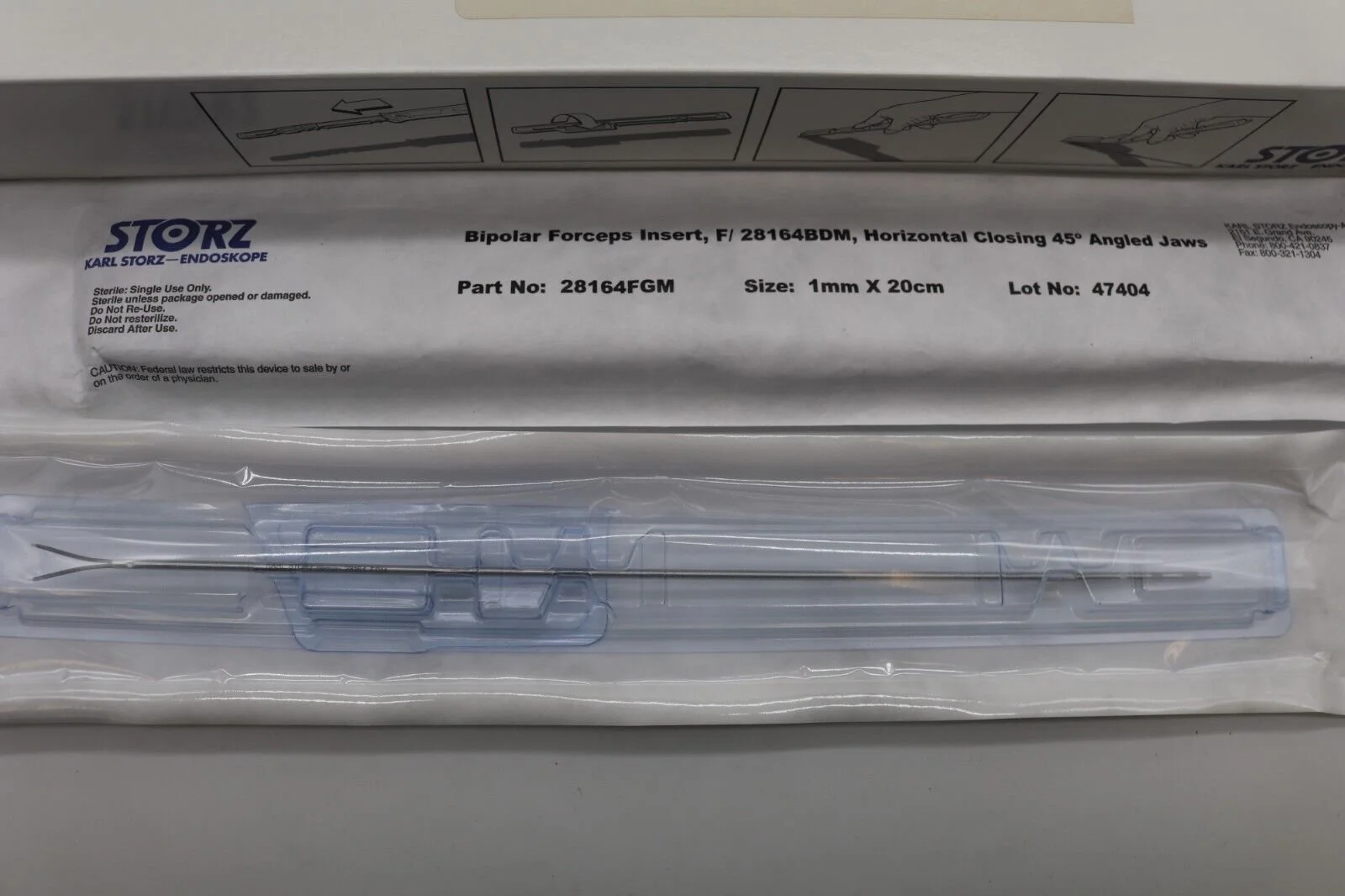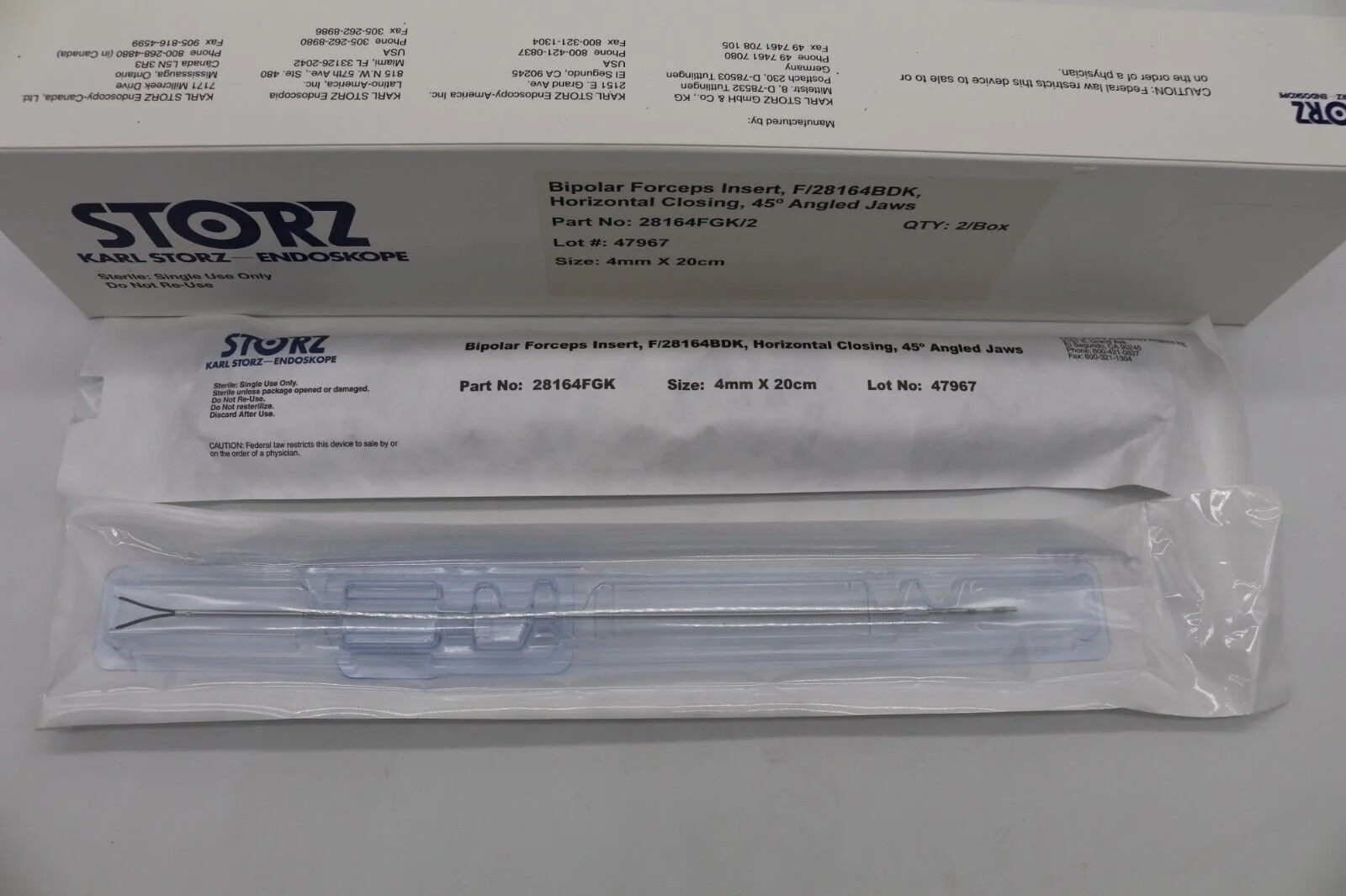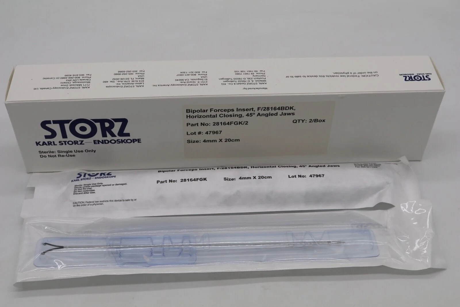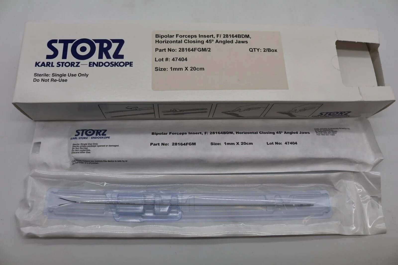 Storz | 28164FGL/2 | IN DATE | BOX OF 2 | Bipolar Forceps Insert Vertical Closing 45° Angled Jaws