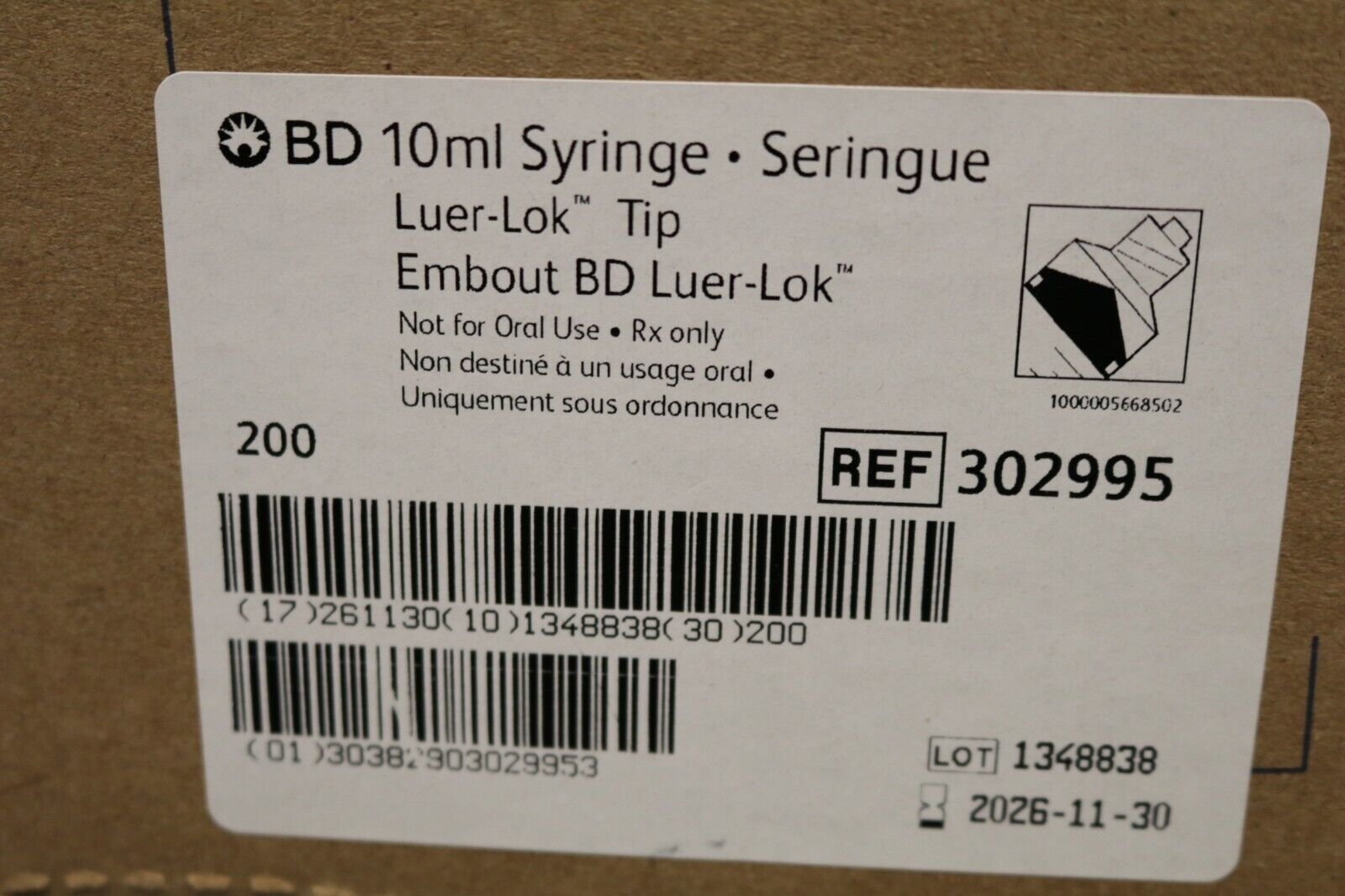BD | 309605 | IN-DATE | BOX OF 240 | 10mL Luer-Lok Tip Syringes