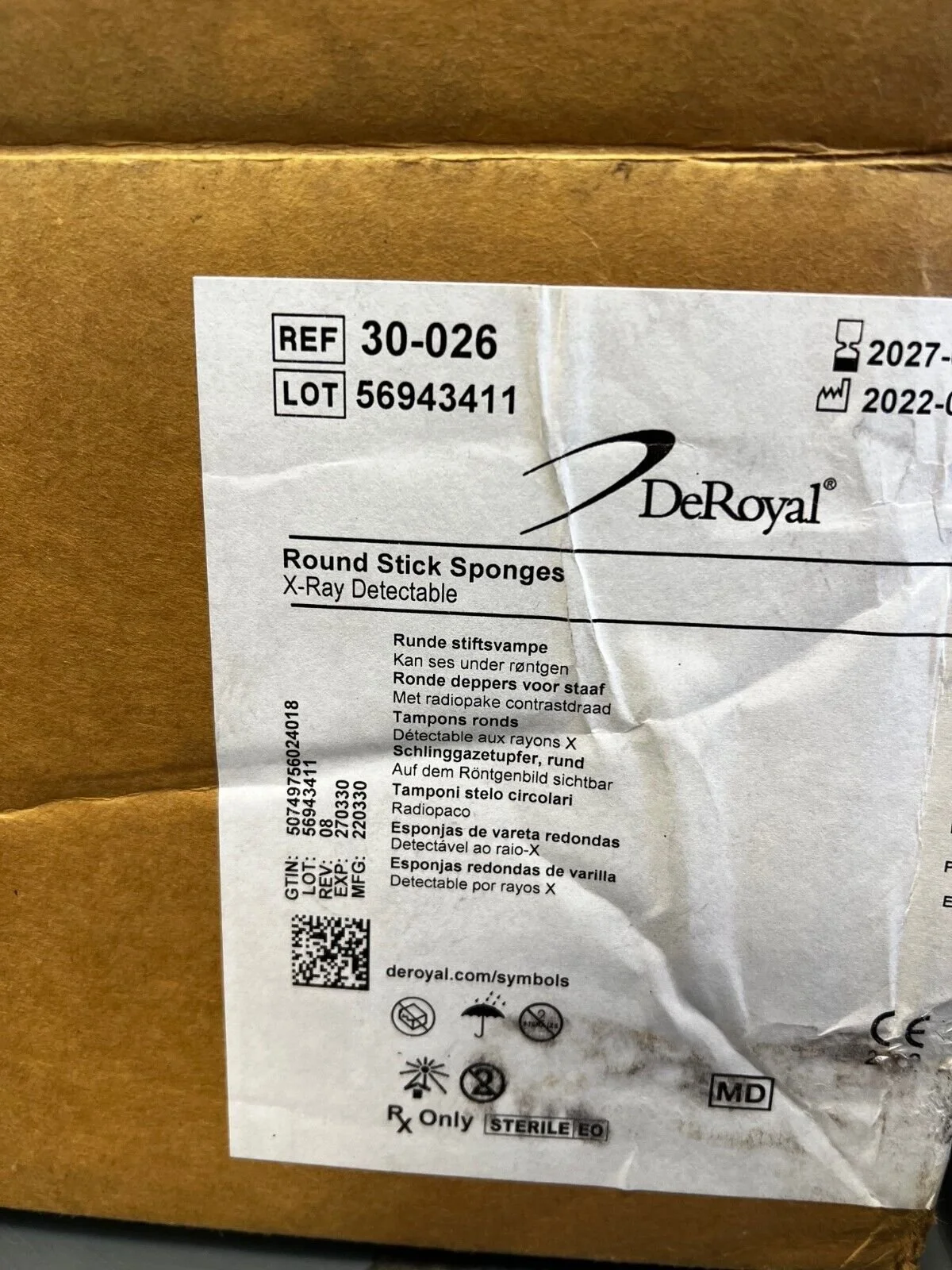 DeRoyal | 30-026 | IN DATE | CASE OF 50 | Case of 50 Packs of 10 Round Stick Sponge (x-ray Detectable)