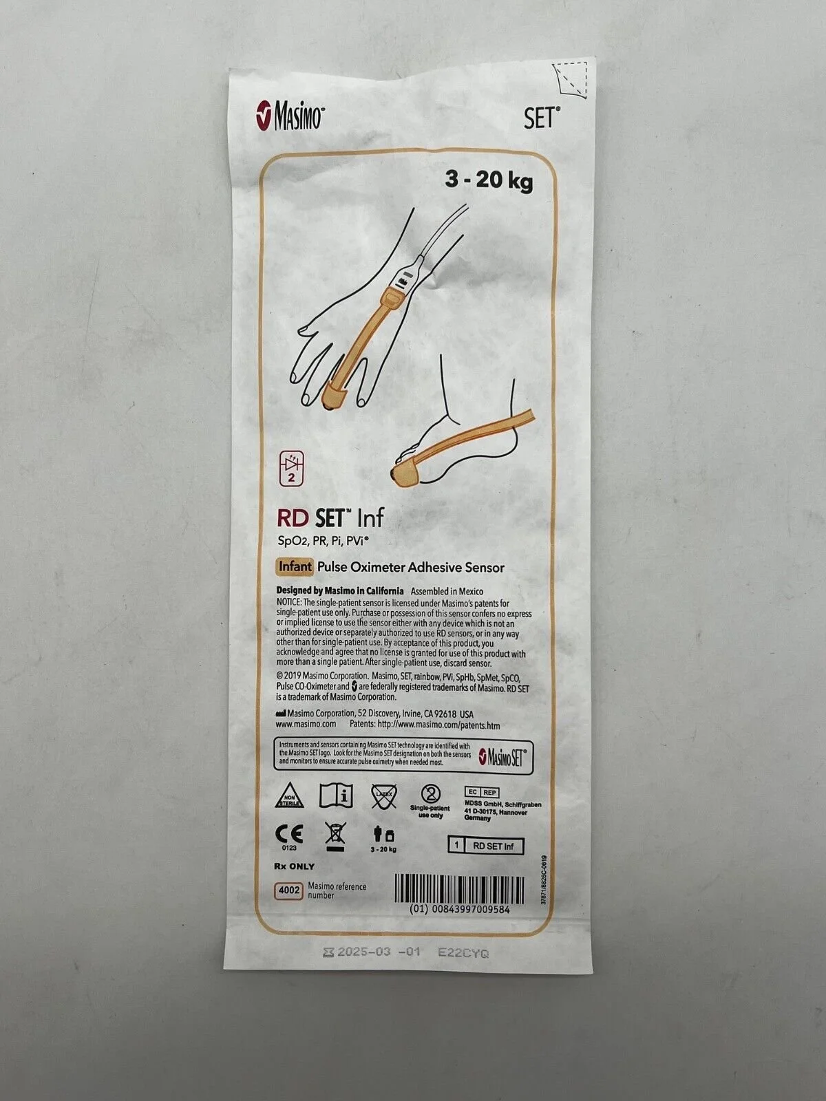 Masimo | 4002 | Box of 20 | RD Set Infant SpO2 Pulse Oximeter Adhesive Sensor 3 - 20 kg