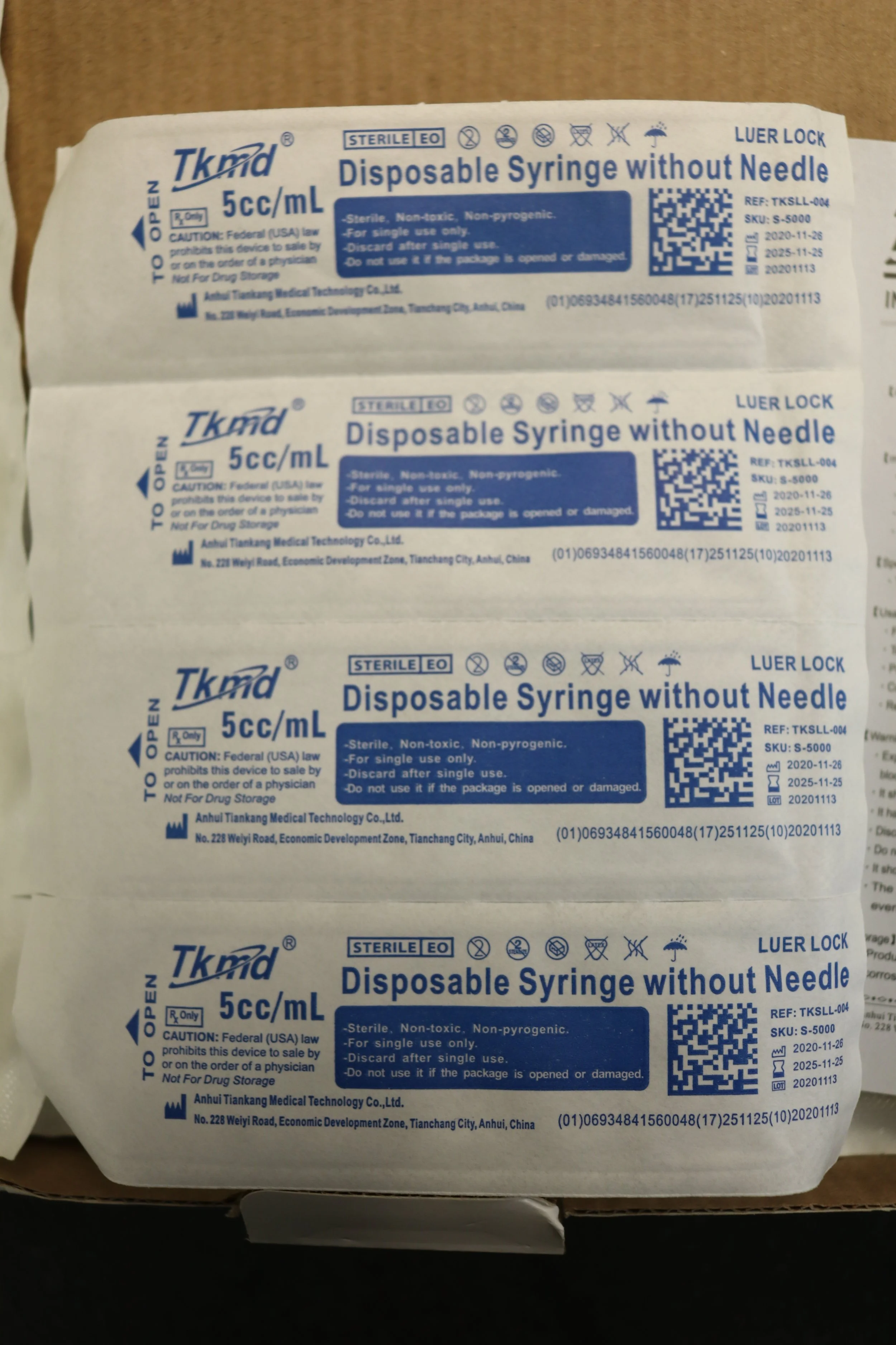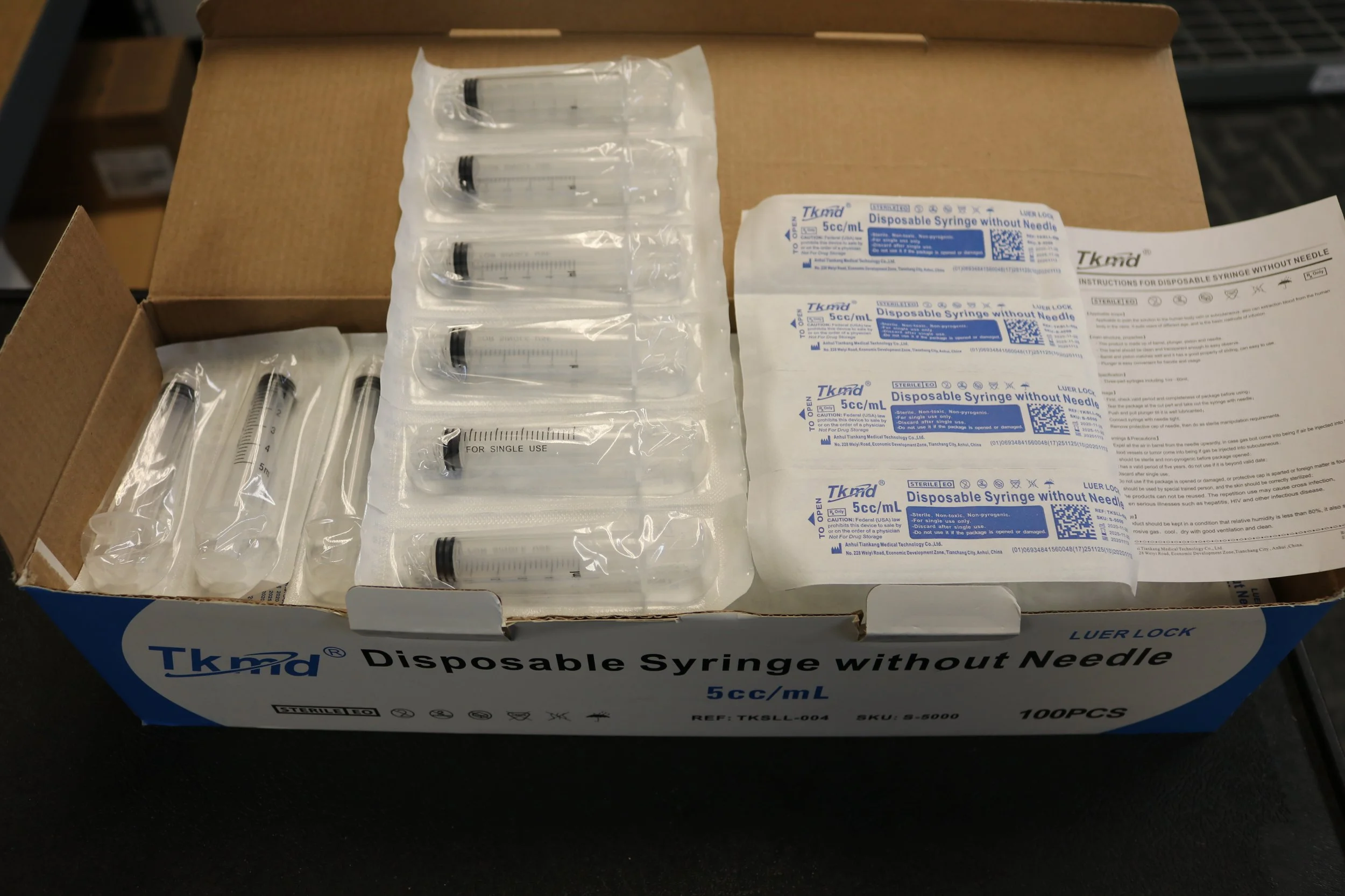 TKmd | TKSLL-004 | IN DATE | BOX OF 100 | Disposable Syringe without Needle 5ml Luer Lock