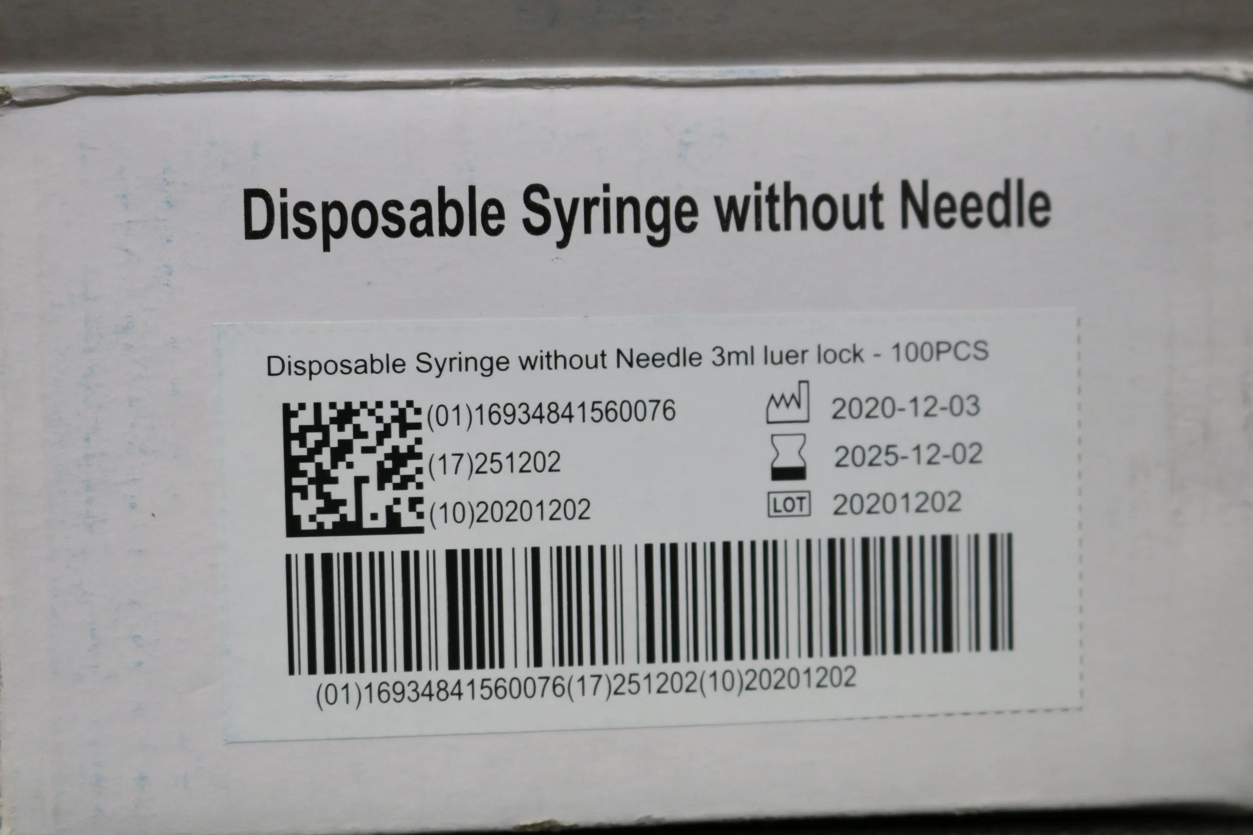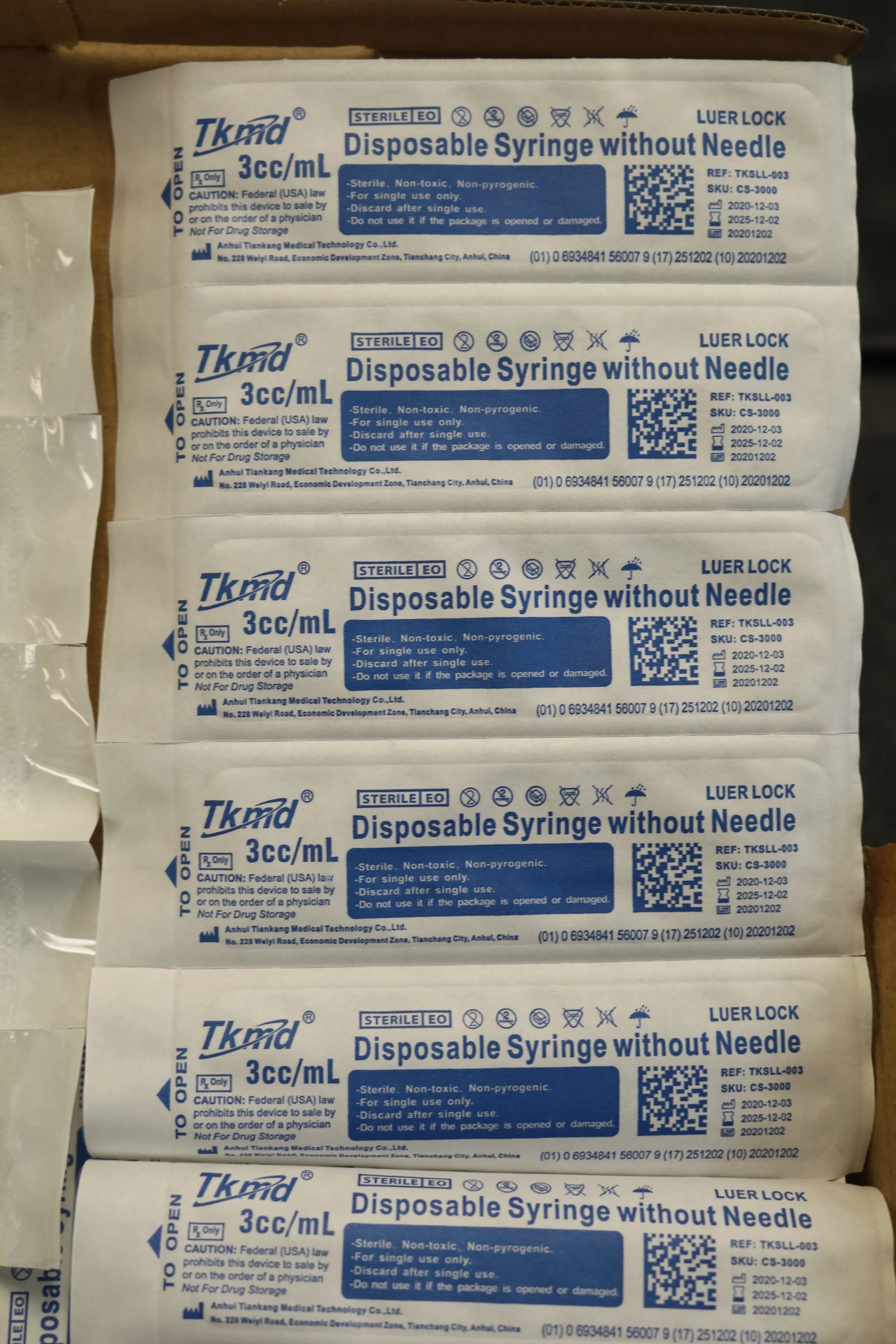 TKmd | TKSLL-003 | IN DATE | BOX OF 100 | Disposable Syringe without Needle 3ml Luer Lock