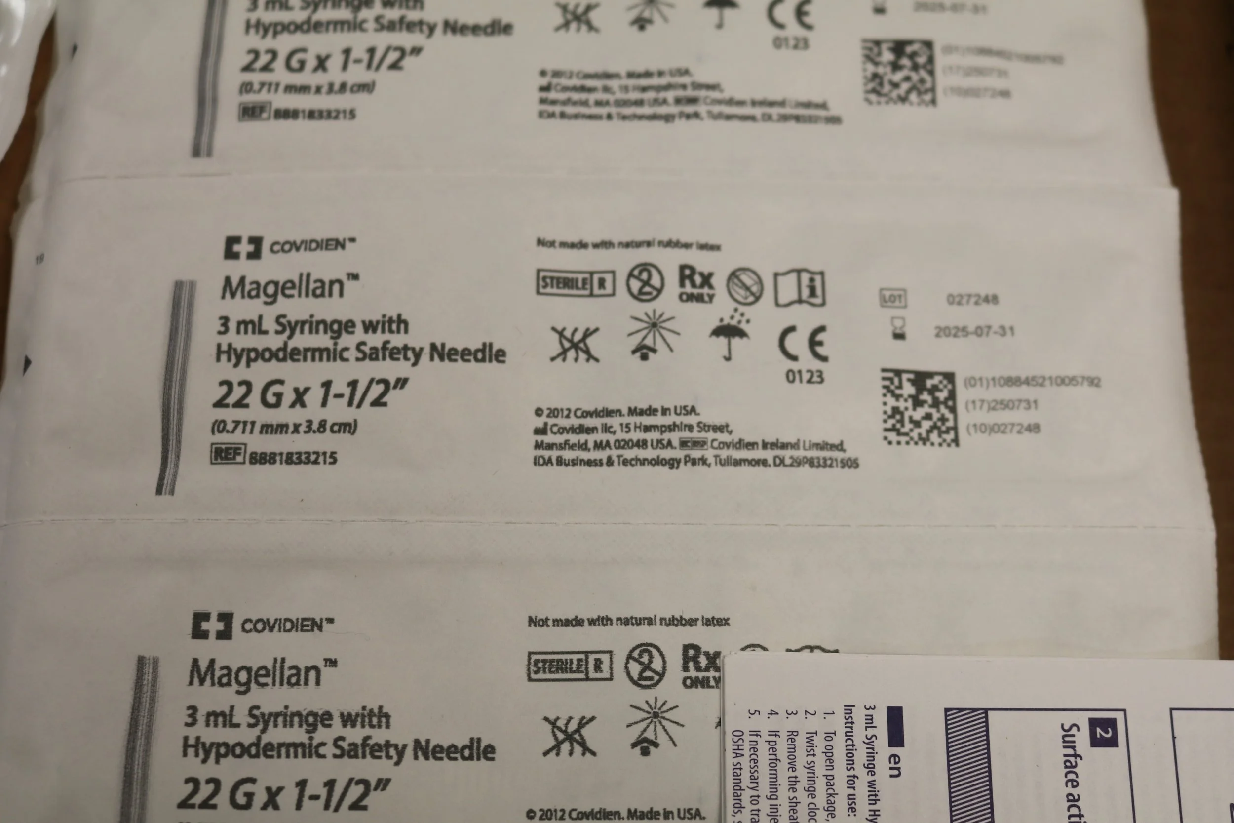 COVIDIEN | 8881833215 | IN-DATE | BOX OF 50 | Magellan 3 ml Syringe with Hypodermic Safety Needle 22 G x 1-1/2” (0.711mm x 3.8cm)