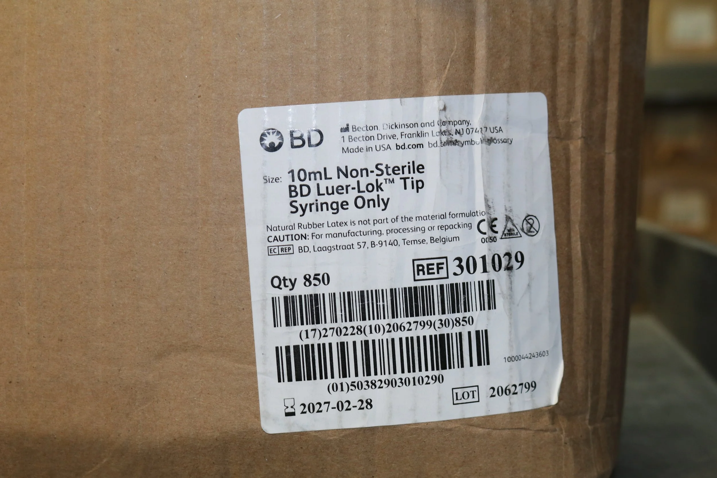 BD | 301029 | BOX OF 850 | 10ml Non-Sterile Luer-Lok Tip Syringe Only