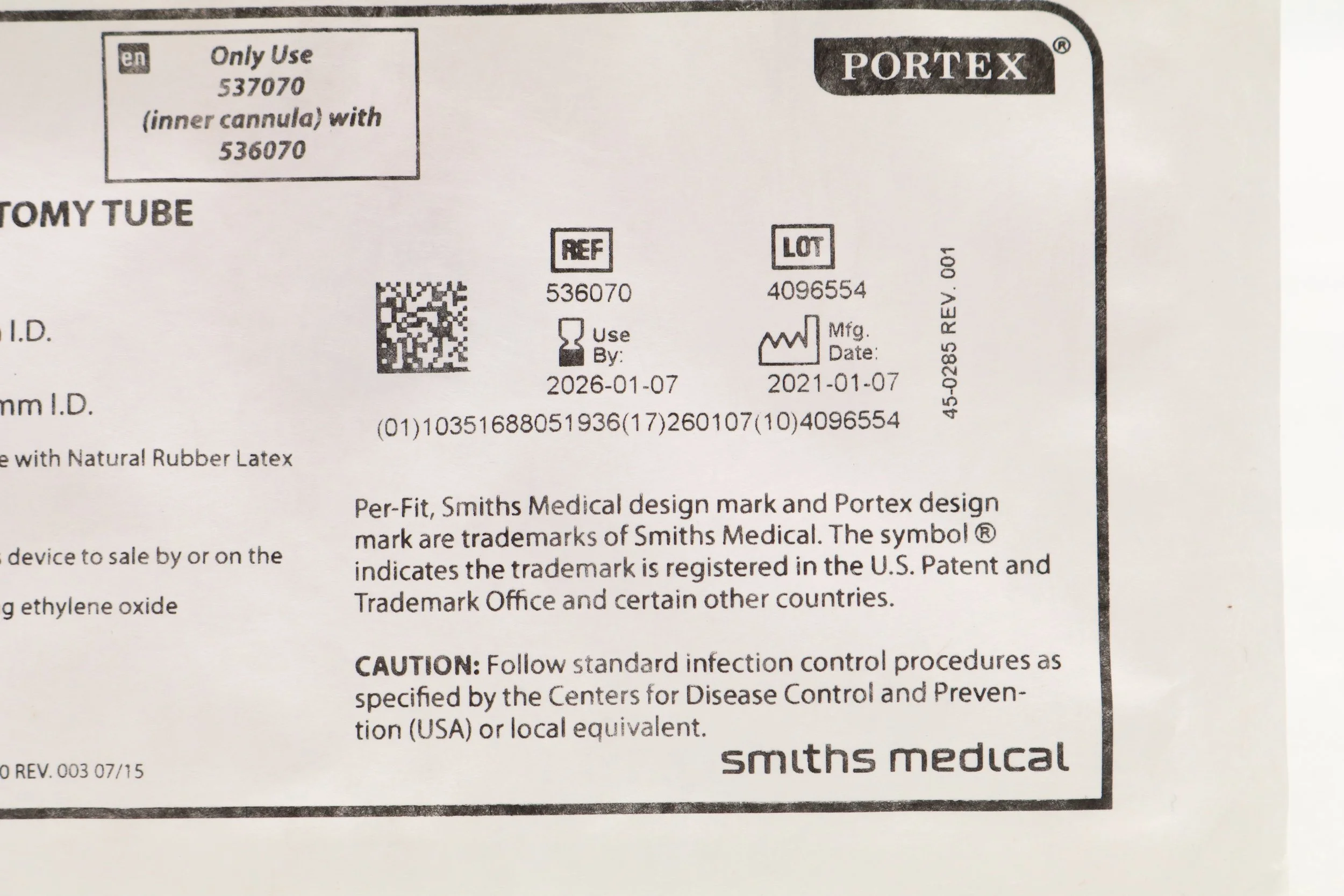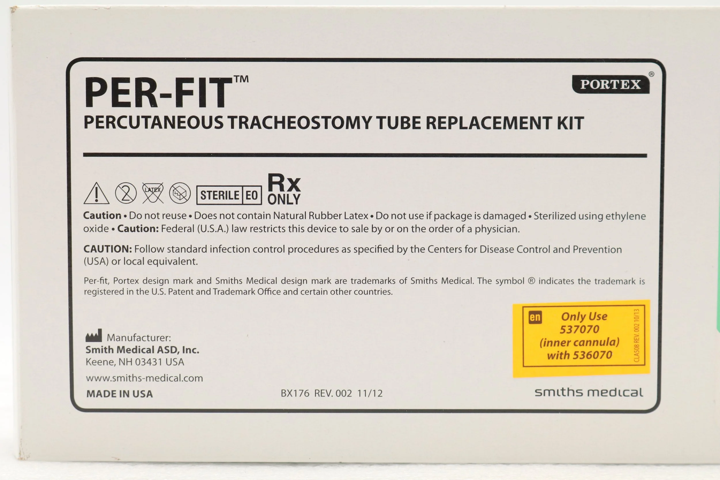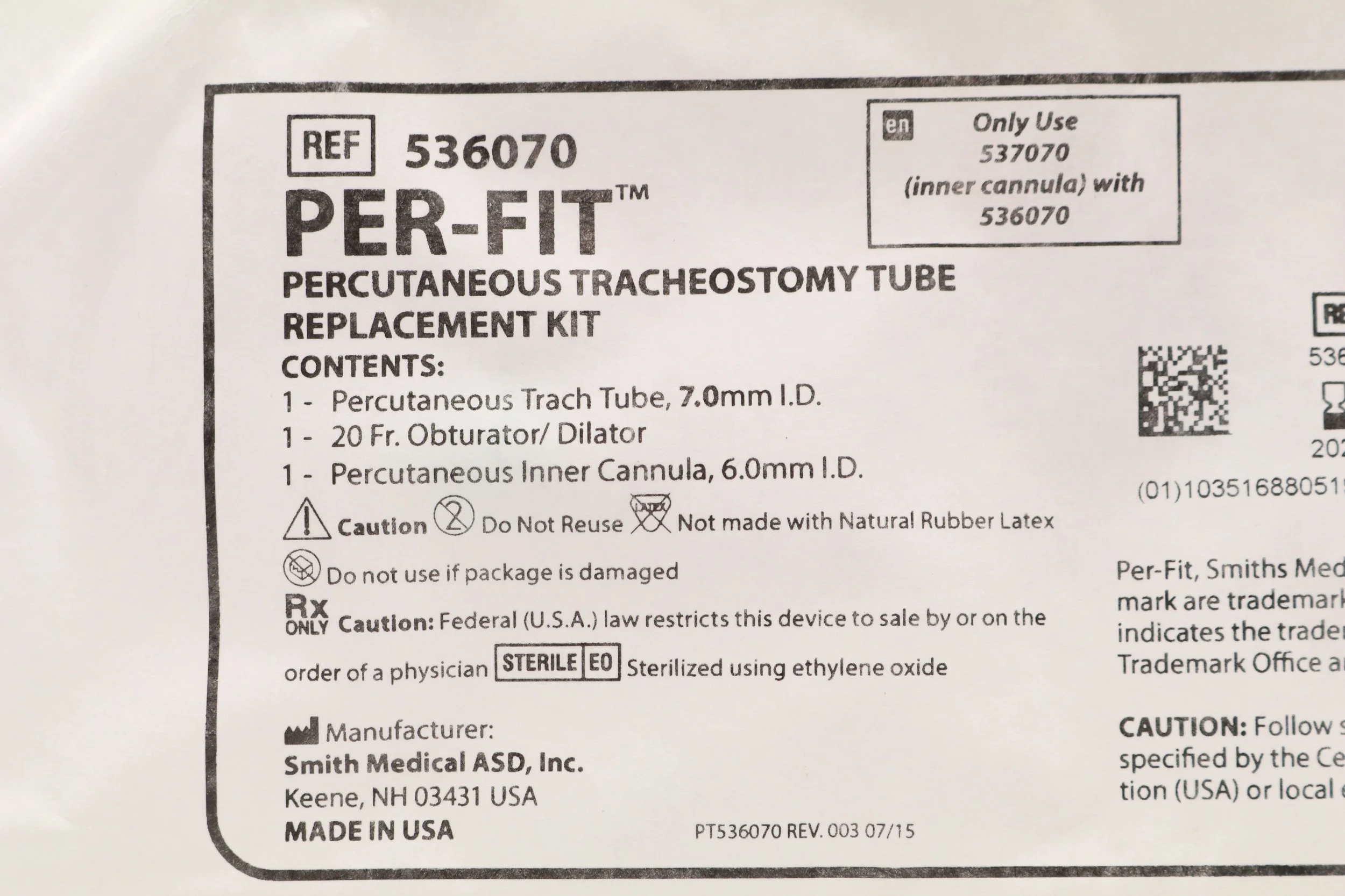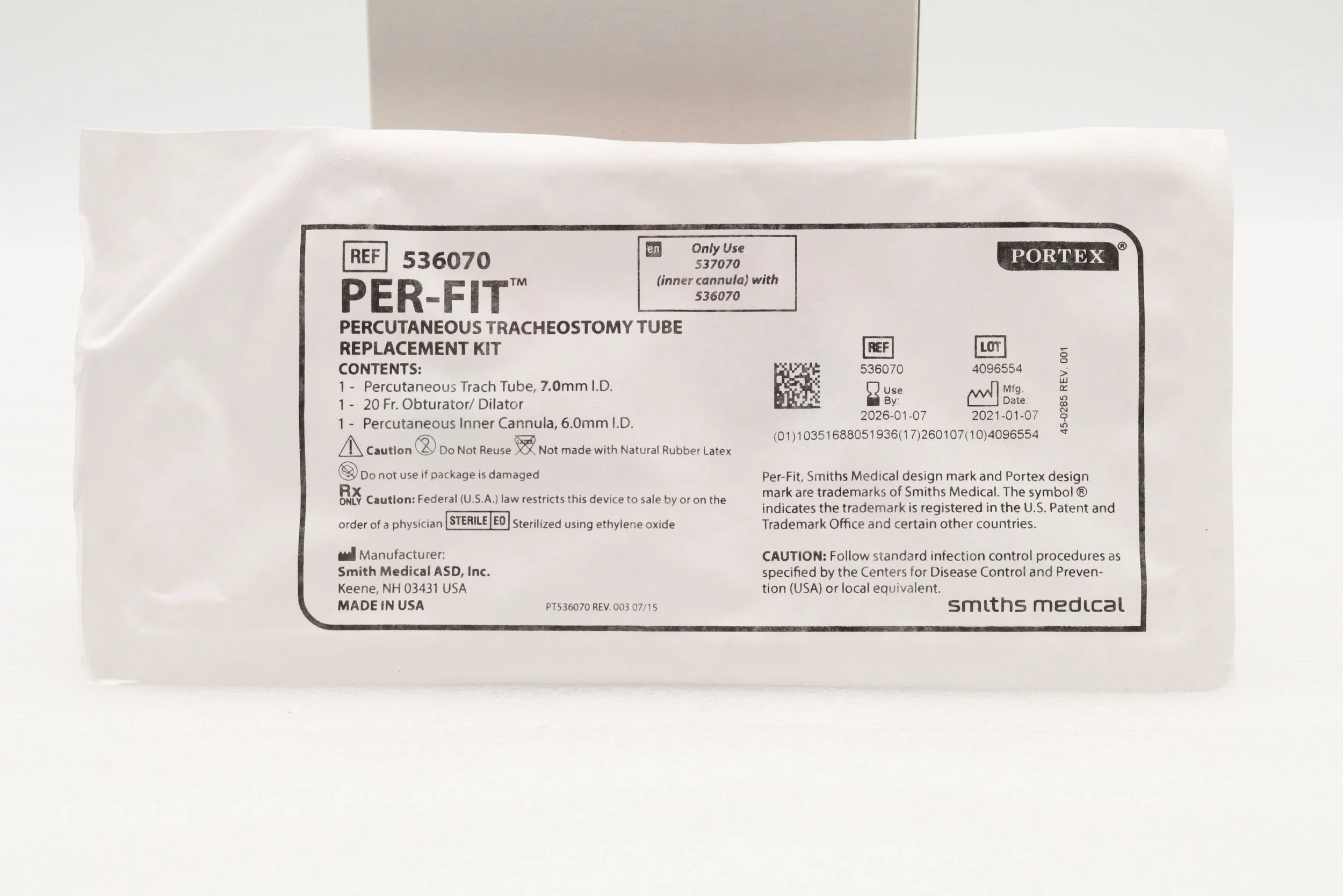 Smiths Medical | 536070 | SHORT DATE | BOX OF 1 | Portex Per-Fit Tracheostomy Tube Replacement Kit 7.0mm (Copy)