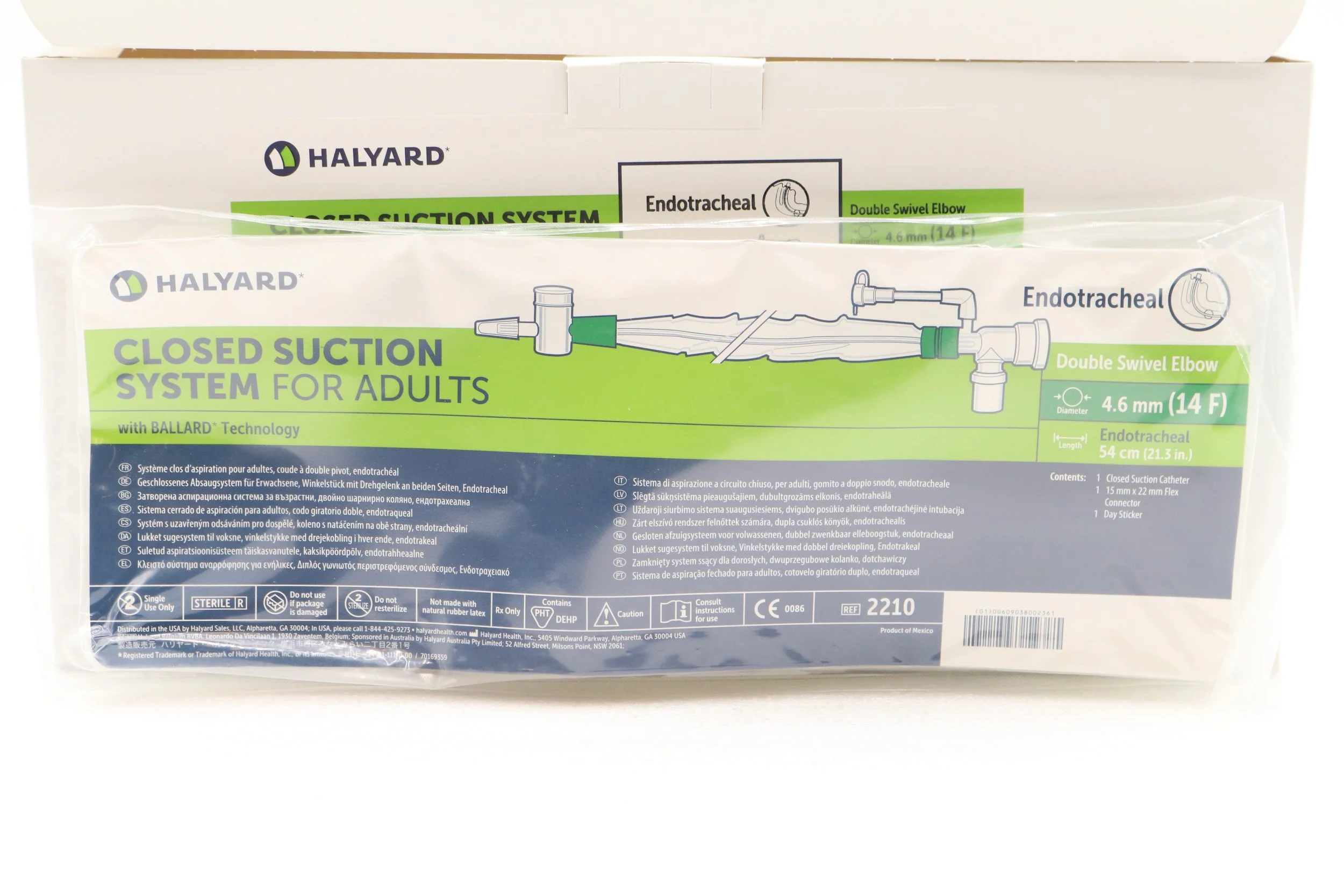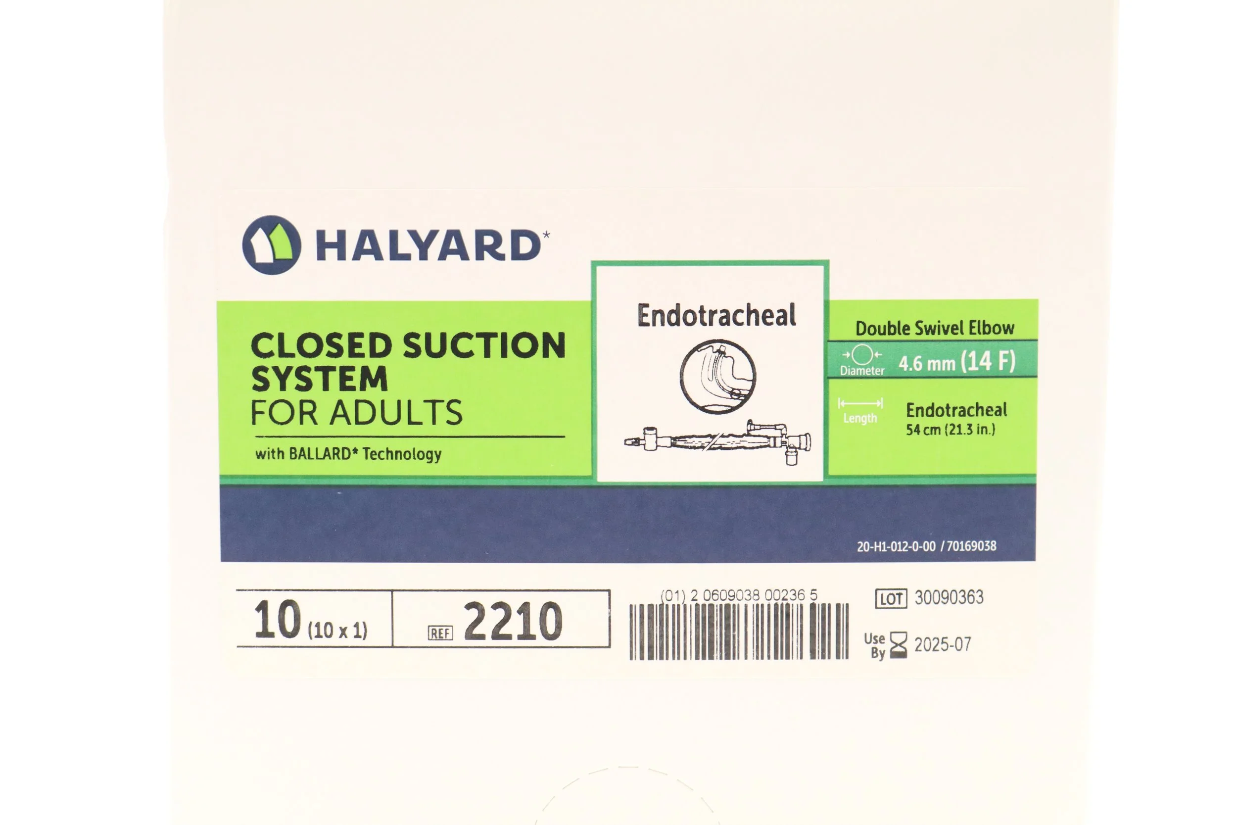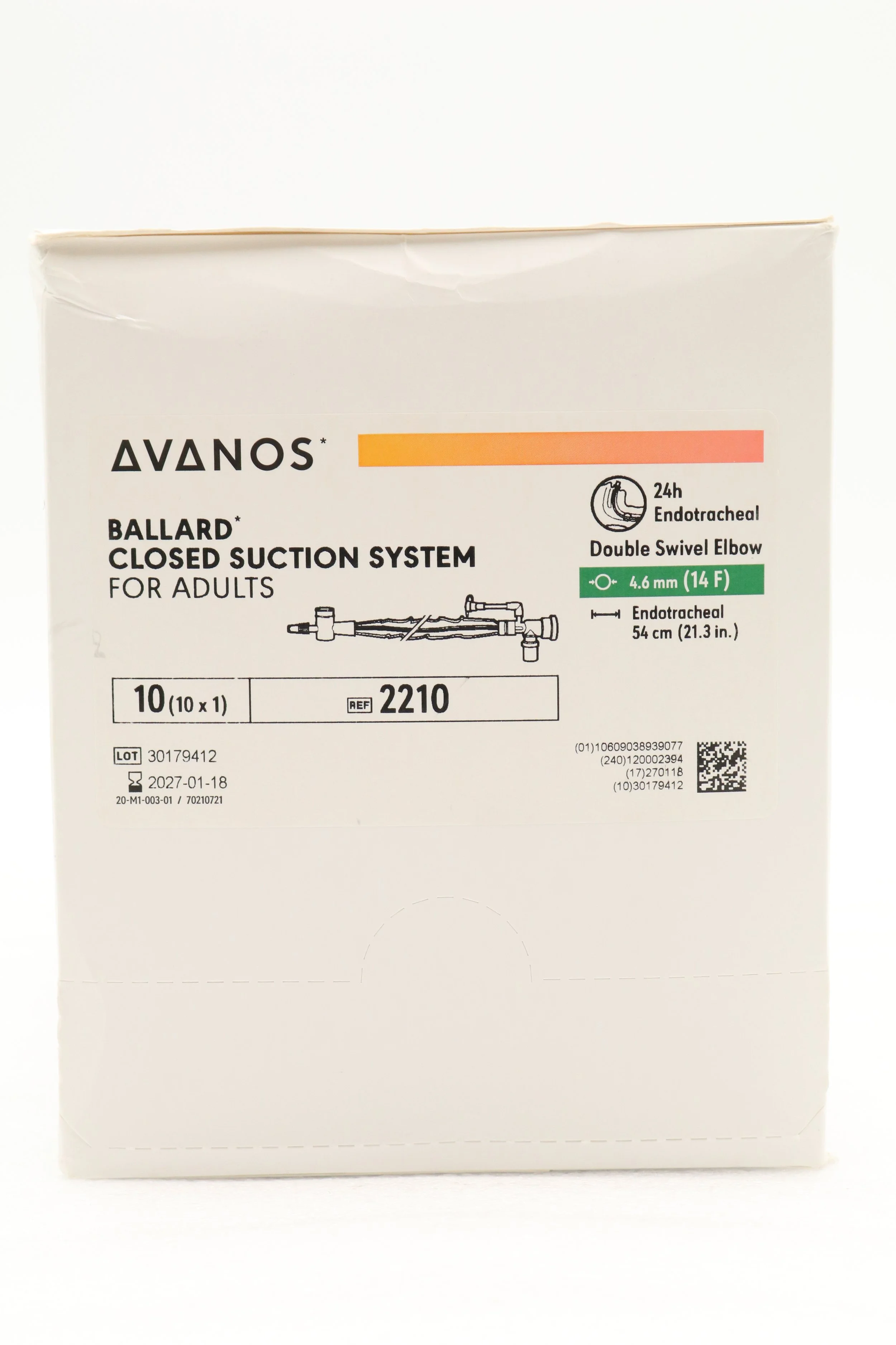 Avanos | 2210 | SHORT DATE | BOX OF 10 | Adult Trach Care Closed Suction System Kit - Adult Trach Care Closed Suction System Kit for Endotracheal Tube, Double Swivel Elbow, 14 Fr x 54 cm (Halyard)