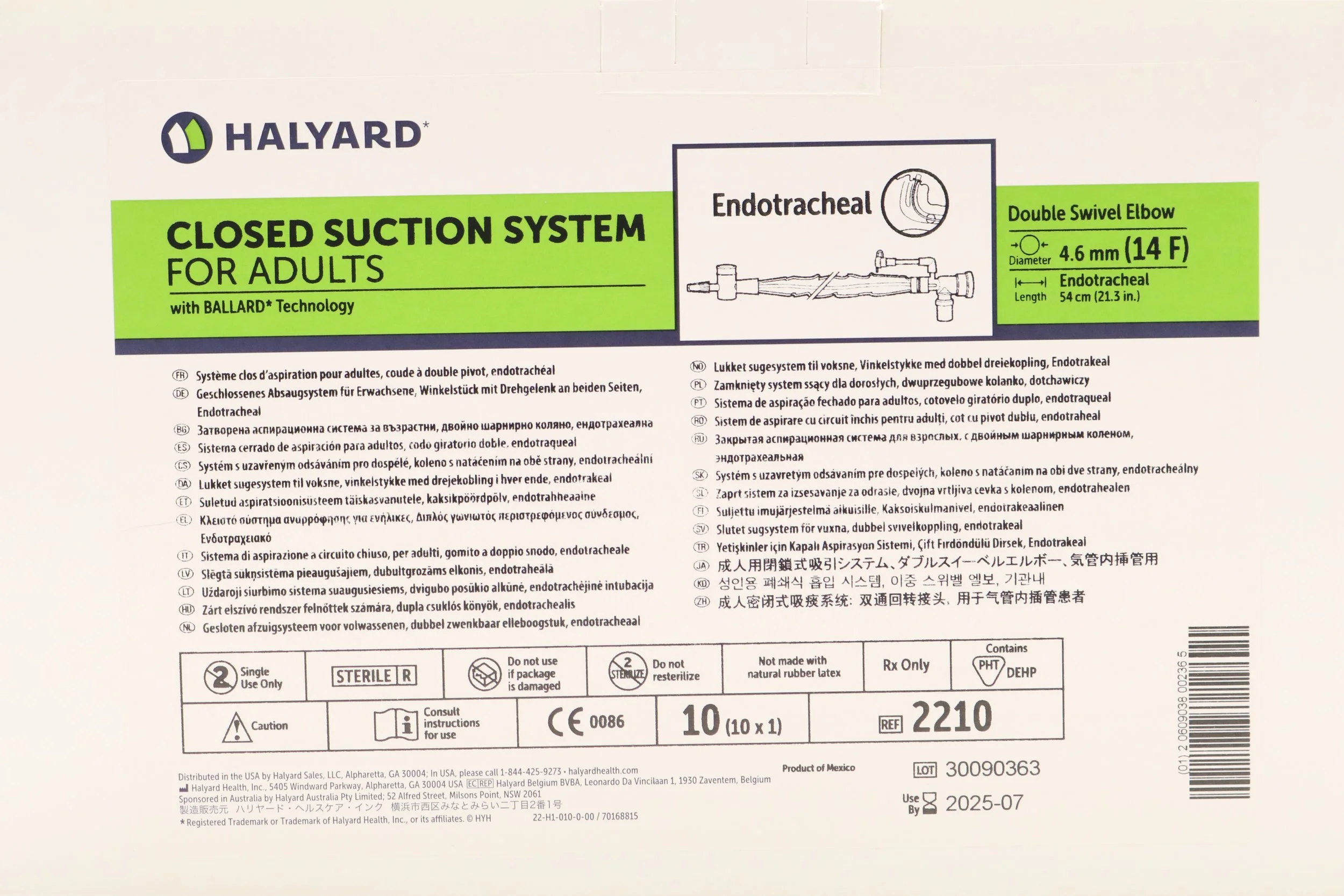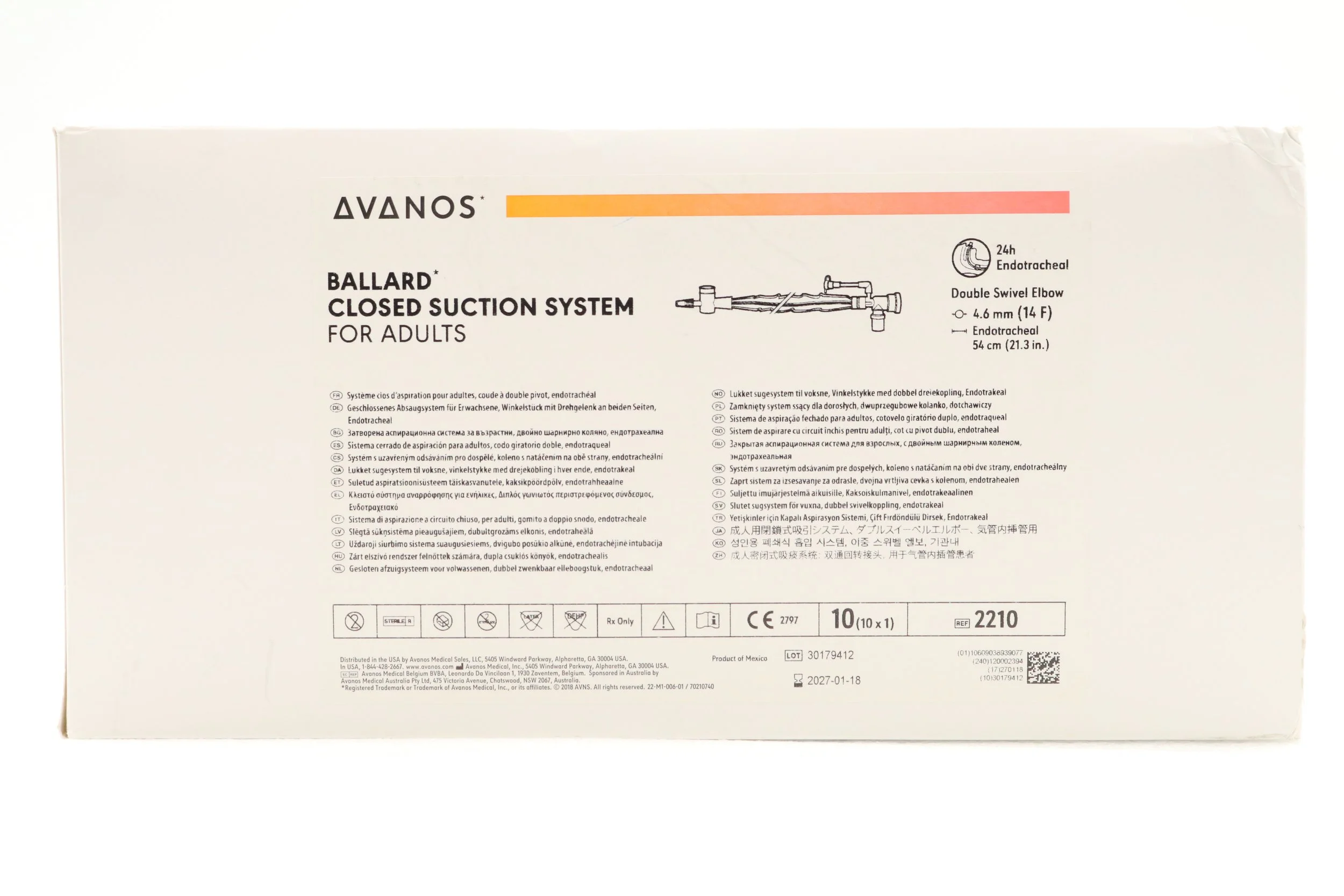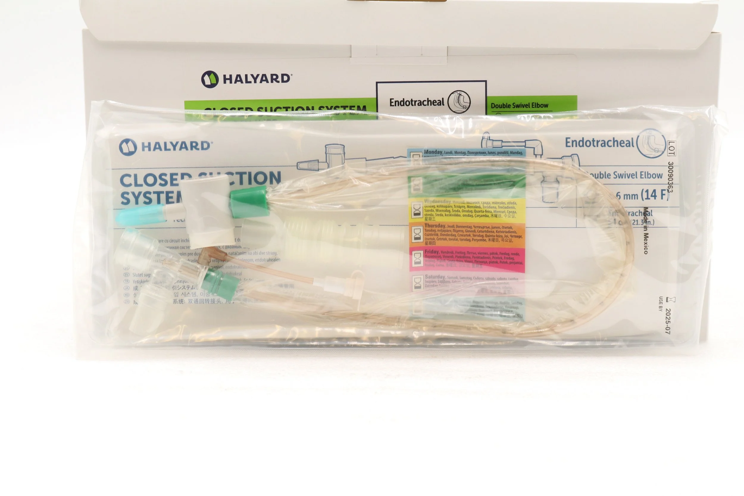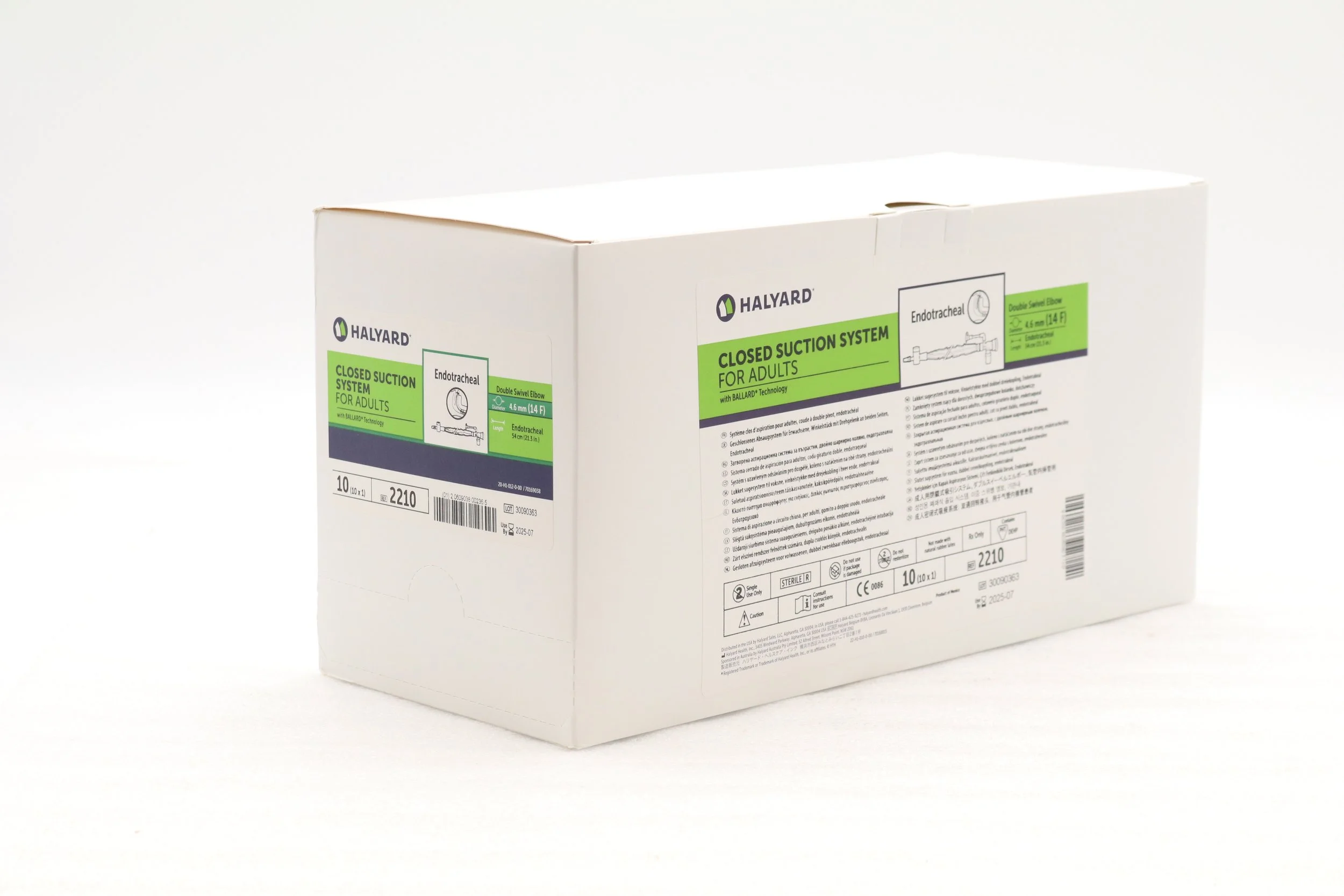 Avanos | 2210 | SHORT DATE | BOX OF 10 | Adult Trach Care Closed Suction System Kit - Adult Trach Care Closed Suction System Kit for Endotracheal Tube, Double Swivel Elbow, 14 Fr x 54 cm (Halyard)