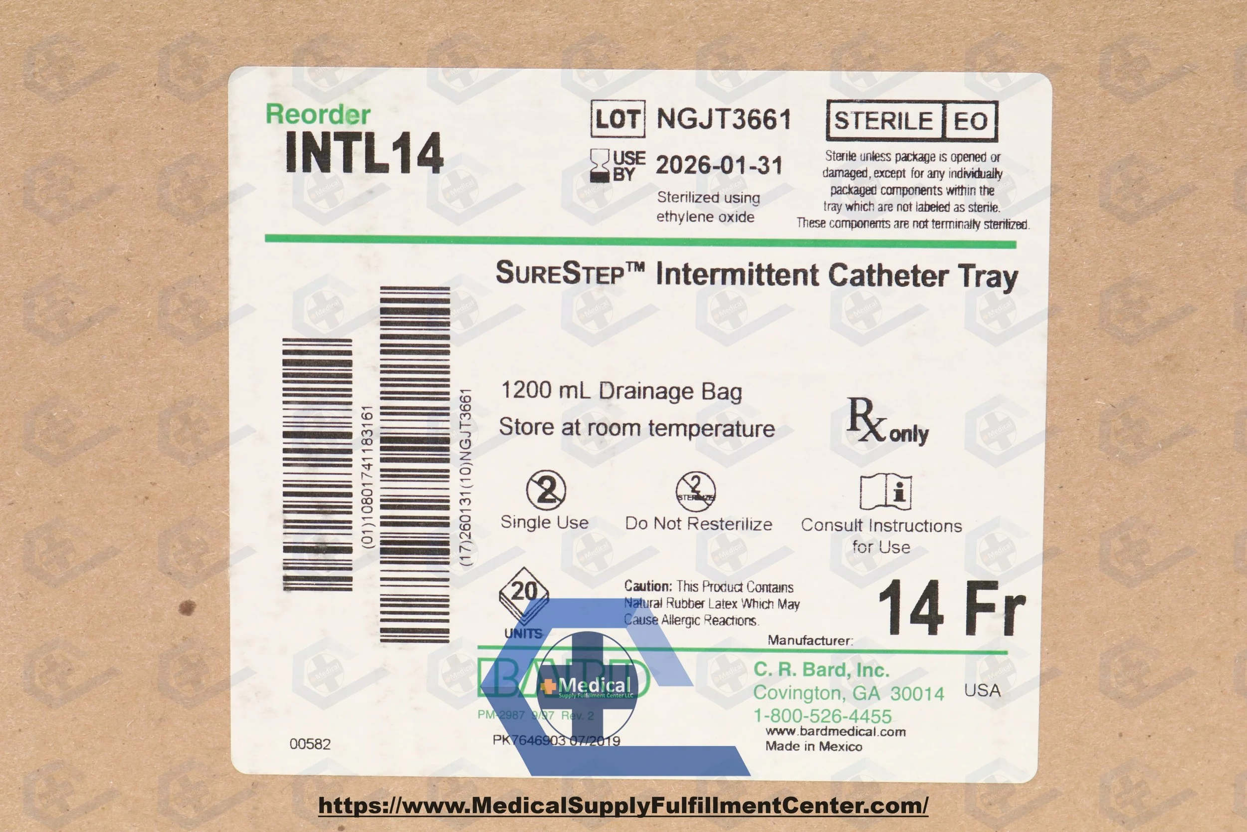 Bard | INTL14 | SHORT DATE | CASE OF 20 | Surestep Intermittent Catheter Tray 14F