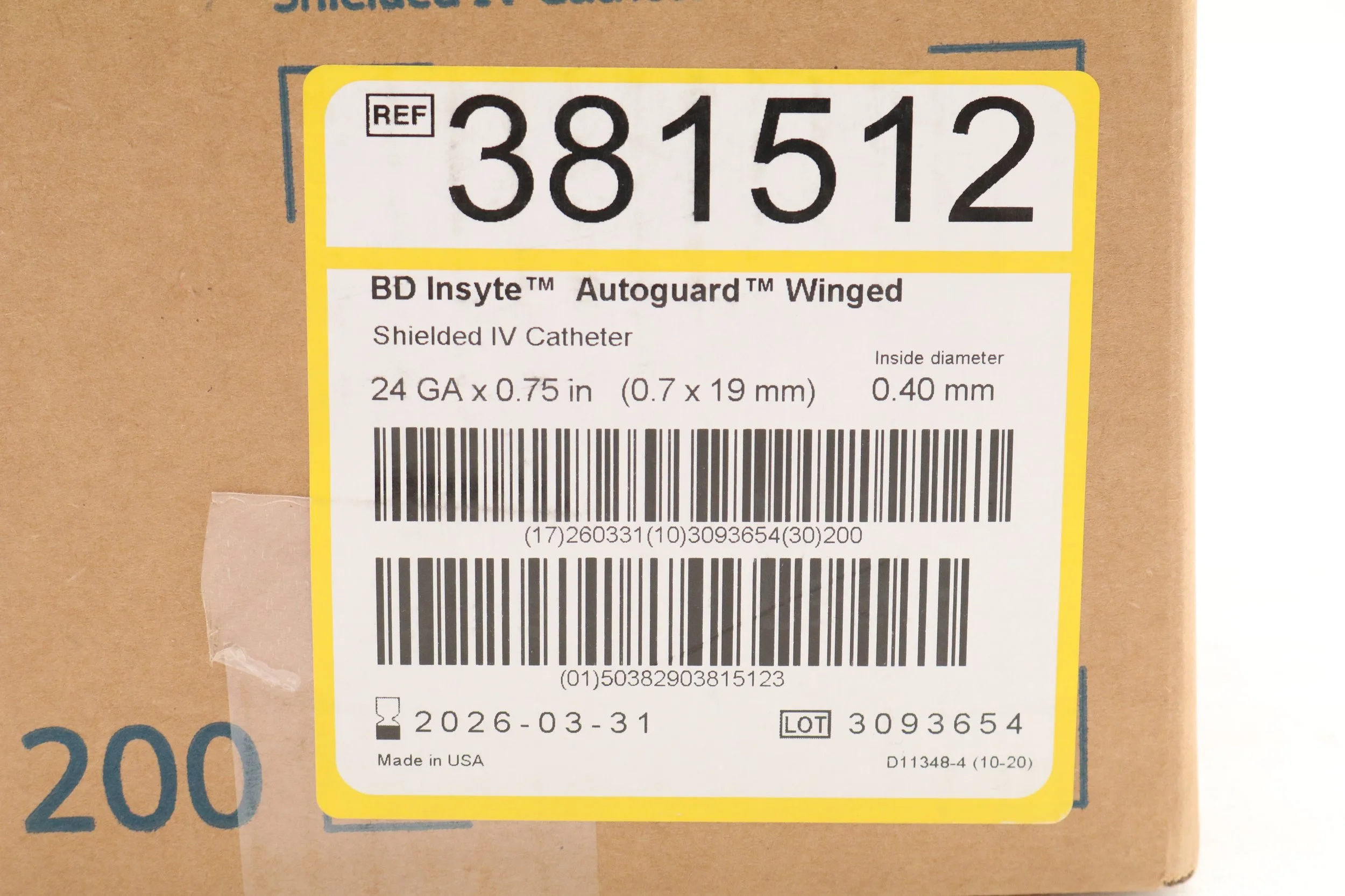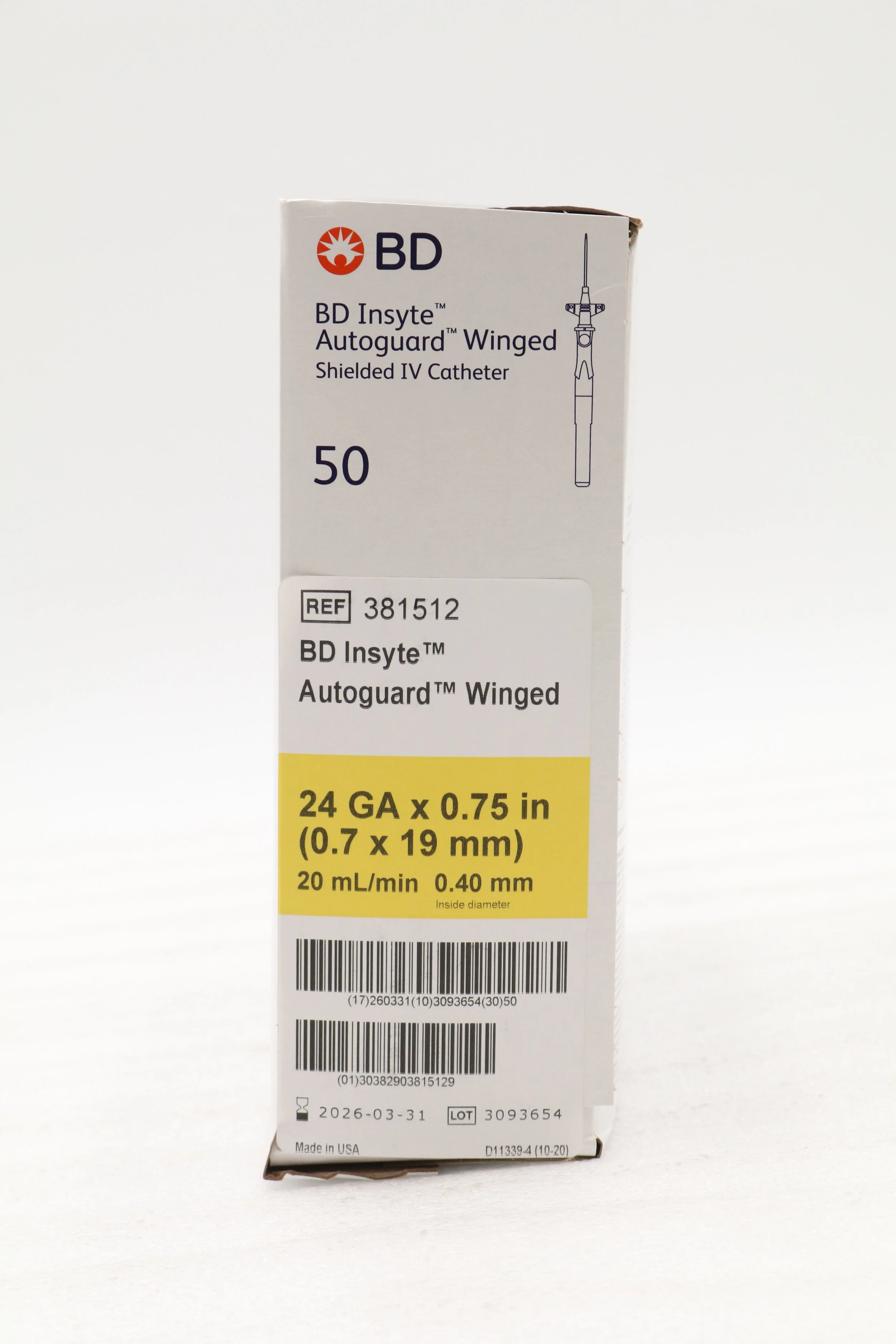 BD | 381412 | IN-DATE | BOX OF 50 | Insyte Autoguard™ Shielded IV Catheter 24 G x 0.75 in