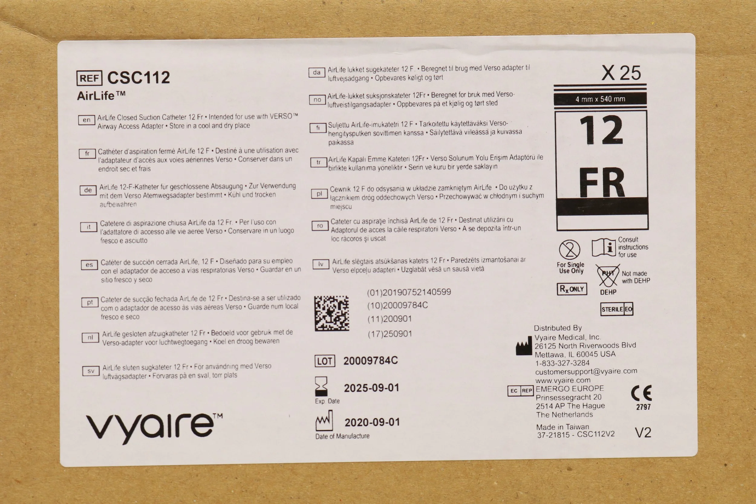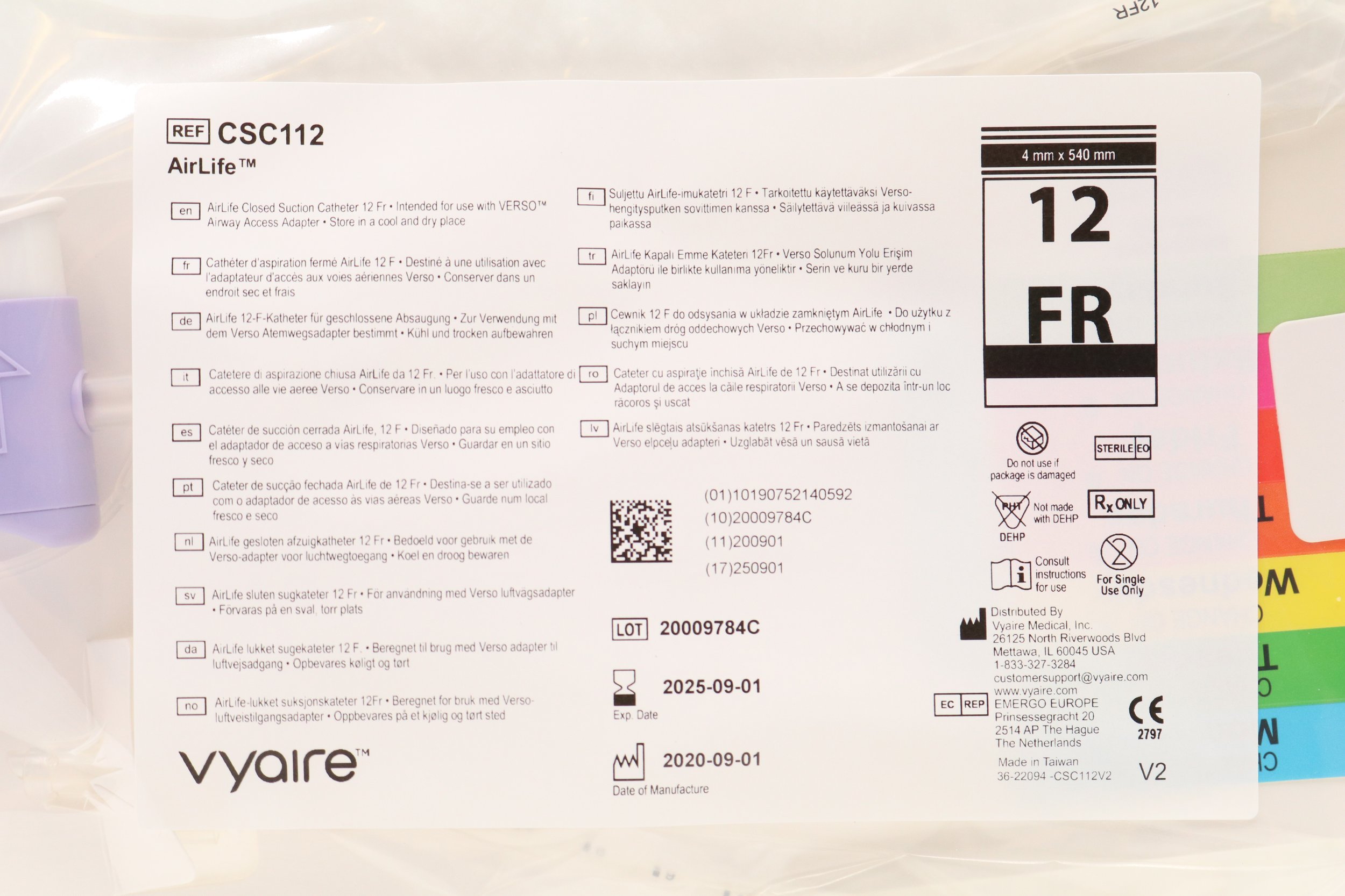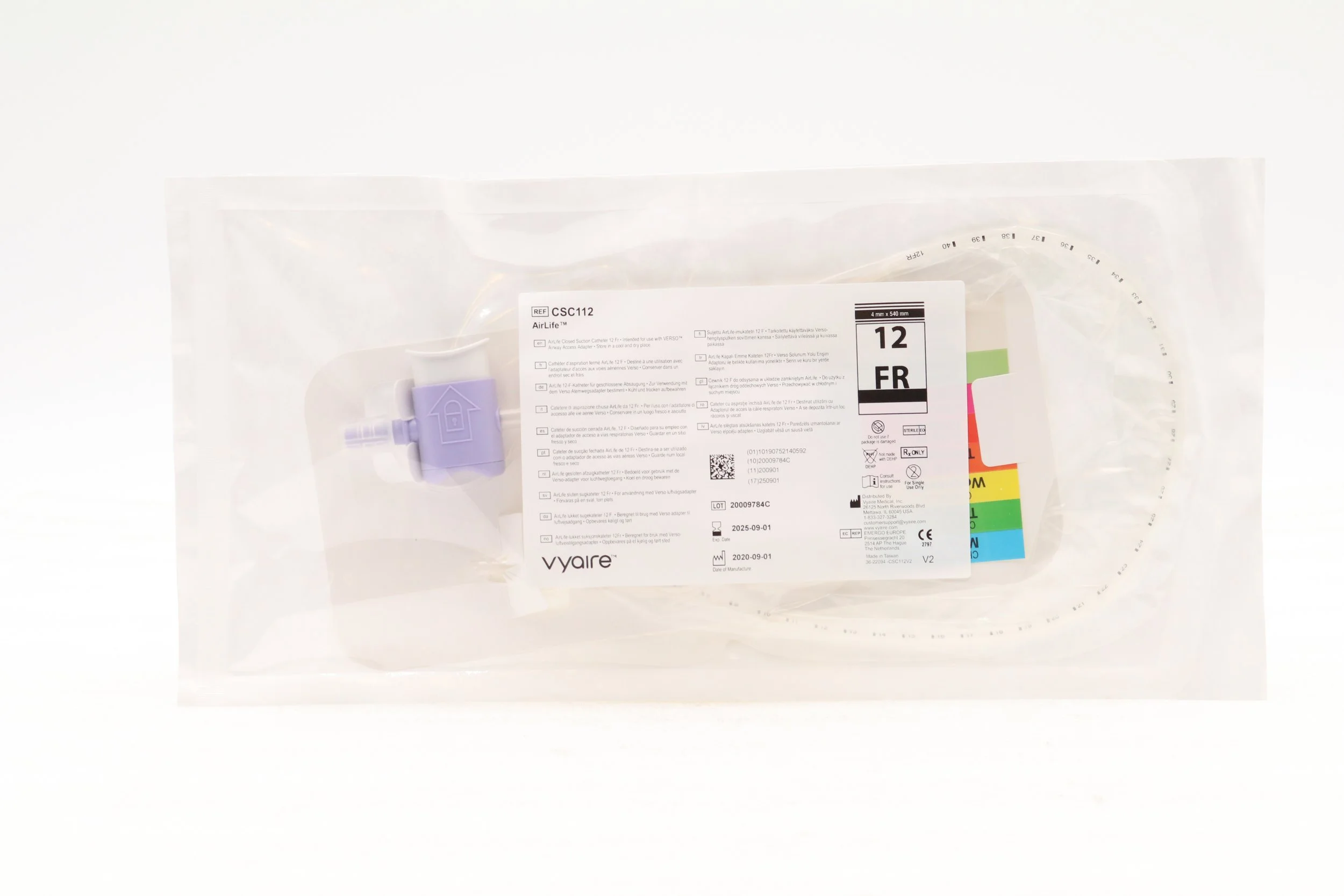 Vyaire | CSC112 | SHORT DATE | CASE OF 25 | AirLife Closed Suction Catheter, 12F